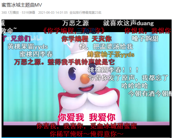 时间来到今年6月初,蜜雪冰城早已全网布局,入驻了微博、微信、抖音和B站等平台,并同时发布了一支中文版官方主题曲MV,然后还有中英文版。
