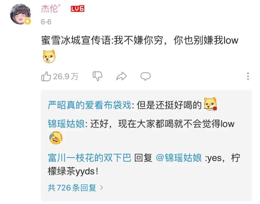 在此,我们不纠结蜜雪冰城的原材料品质如何。保持低价路线确实拉拢了许多路人粉,极大地增加了品牌好感度,网友称其为河南奶茶扛把子。