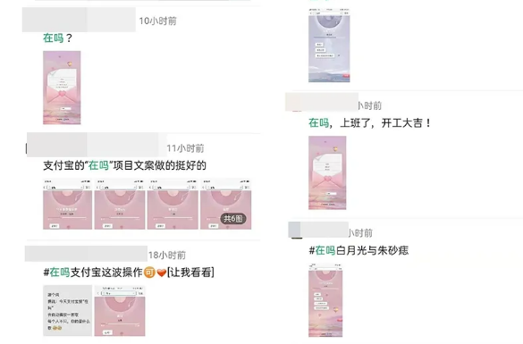 参与方法很简单,只要你在支付宝搜索框输入“在吗”口令,就会收到一首情歌,并配有一句“在吗”开头的土味情话。