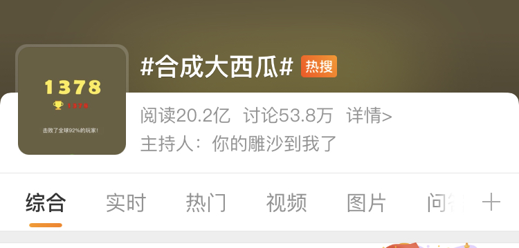 今年1月份,当娱乐圈一连串大新闻爆炸(网友吃瓜热情高涨)之时,一款名为《合成大西瓜》的小游戏迅速出圈,霸占微博热搜,相关的百度指数也呈现井喷式增长。