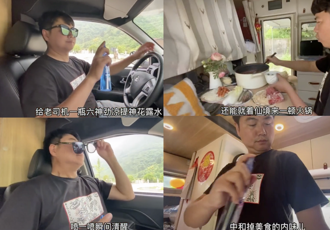 - 户外玩家、旅行圈:开着房车去旅行的@三口之家蜗游记,是六神劲凉提神花露水的忠实用户,提振精神,远离疲劳。