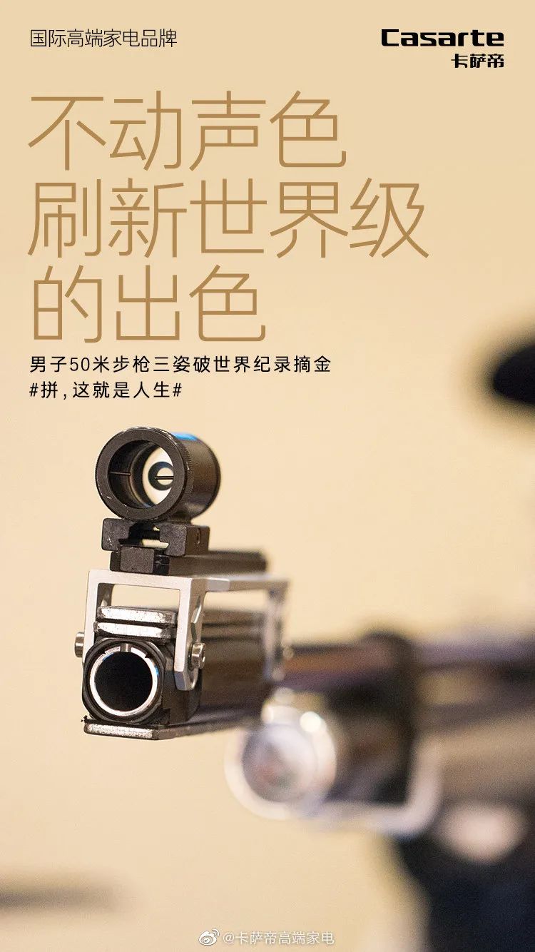 借势背景:张常鸿射击男子50米步枪三姿金牌