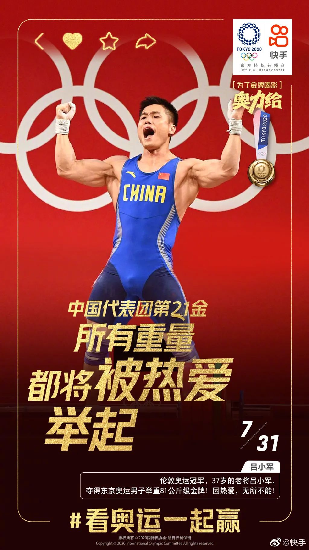 借势背景:吕小军以37岁“高龄”在81公斤级举重比赛中夺金, 完美诠释了老将的热爱与坚守。