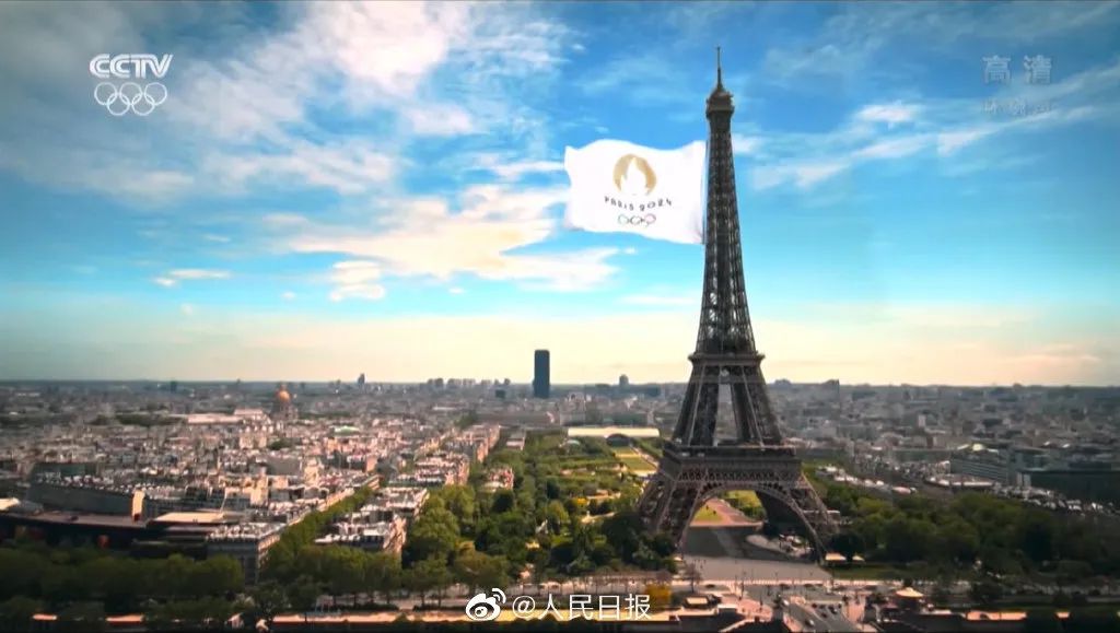 随后的“巴黎八分钟”短片浪漫又热情。巨大的巴黎奥运会会旗在埃菲尔铁塔上迎风飘扬,会徽是女性也是火焰。