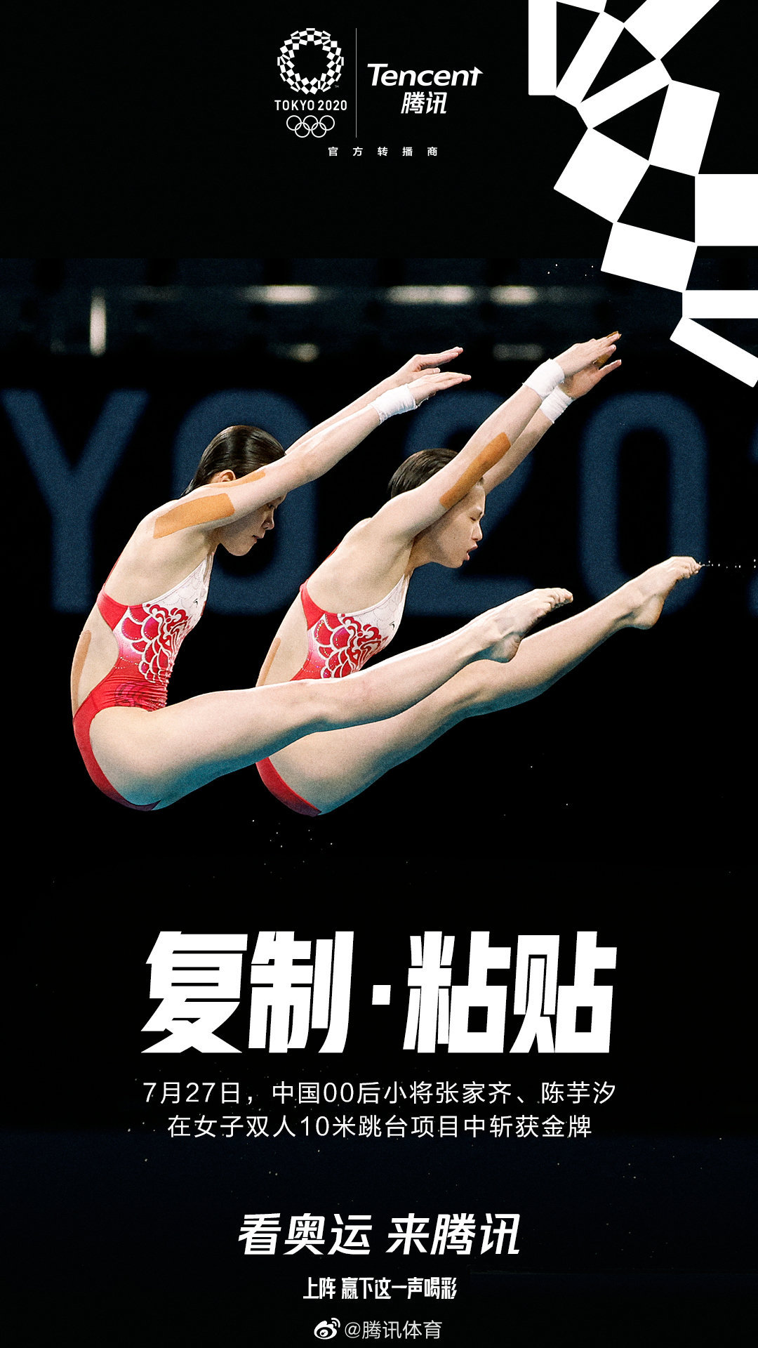 借势背景:00后小将张家齐、陈芋汐夺得女子双人十米台金牌, 两人动作一致到好像复制黏贴出来的。