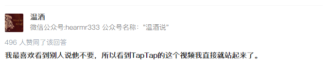 面对质疑的最好方式就是直面质疑,从情绪共鸣到自我吐槽,从内部社区再到社媒体延展,TapTap深知好的内容营销只是第一步,感用户之所感,秉持“维护纯粹的游戏社区环境”初心,与用户真诚对话,才最终能赢得用户的信赖。