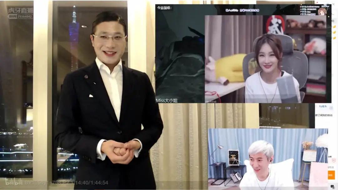 直播中出镜的不乏人气头部主播,如LOL解说Rita、@药水哥。有着电竞女王、虎牙一姐之称的@Miss大小姐也来了。