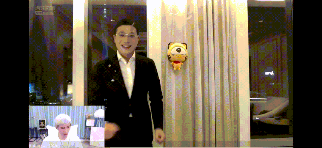 徐先生等待连线,心情不错,跟着bgm摇了起来~