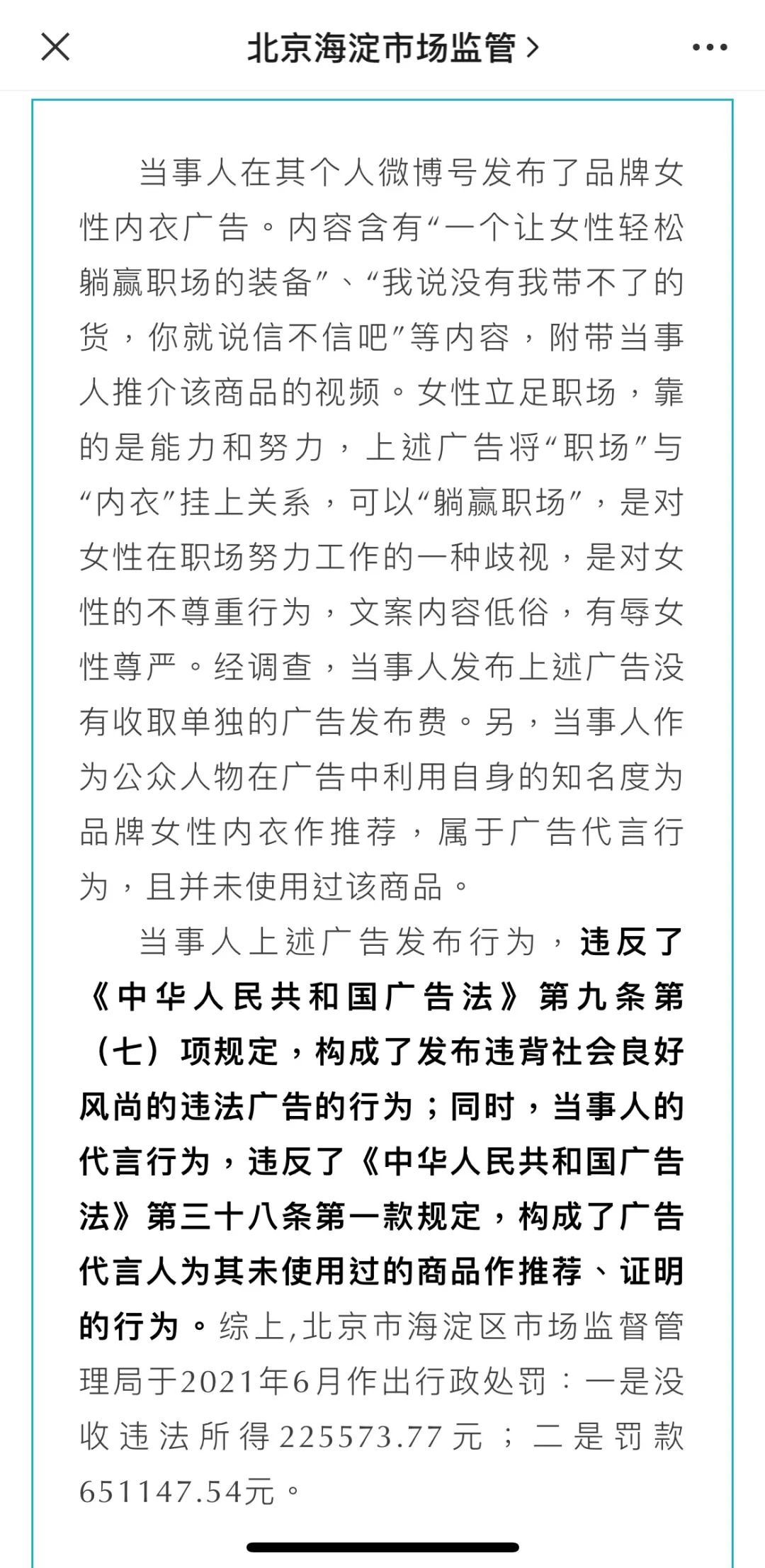 公众号@北京海淀市场监管 将其作为“违法广告典型案例”进行点评: