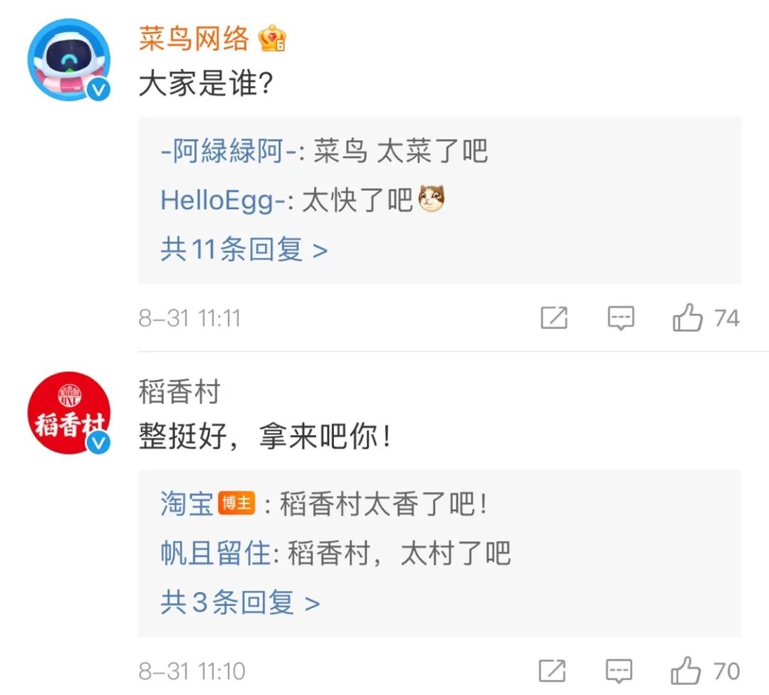 许多品牌也来淘宝官博评论区留言互动“求造句”,有些品牌还被网友调戏了~
