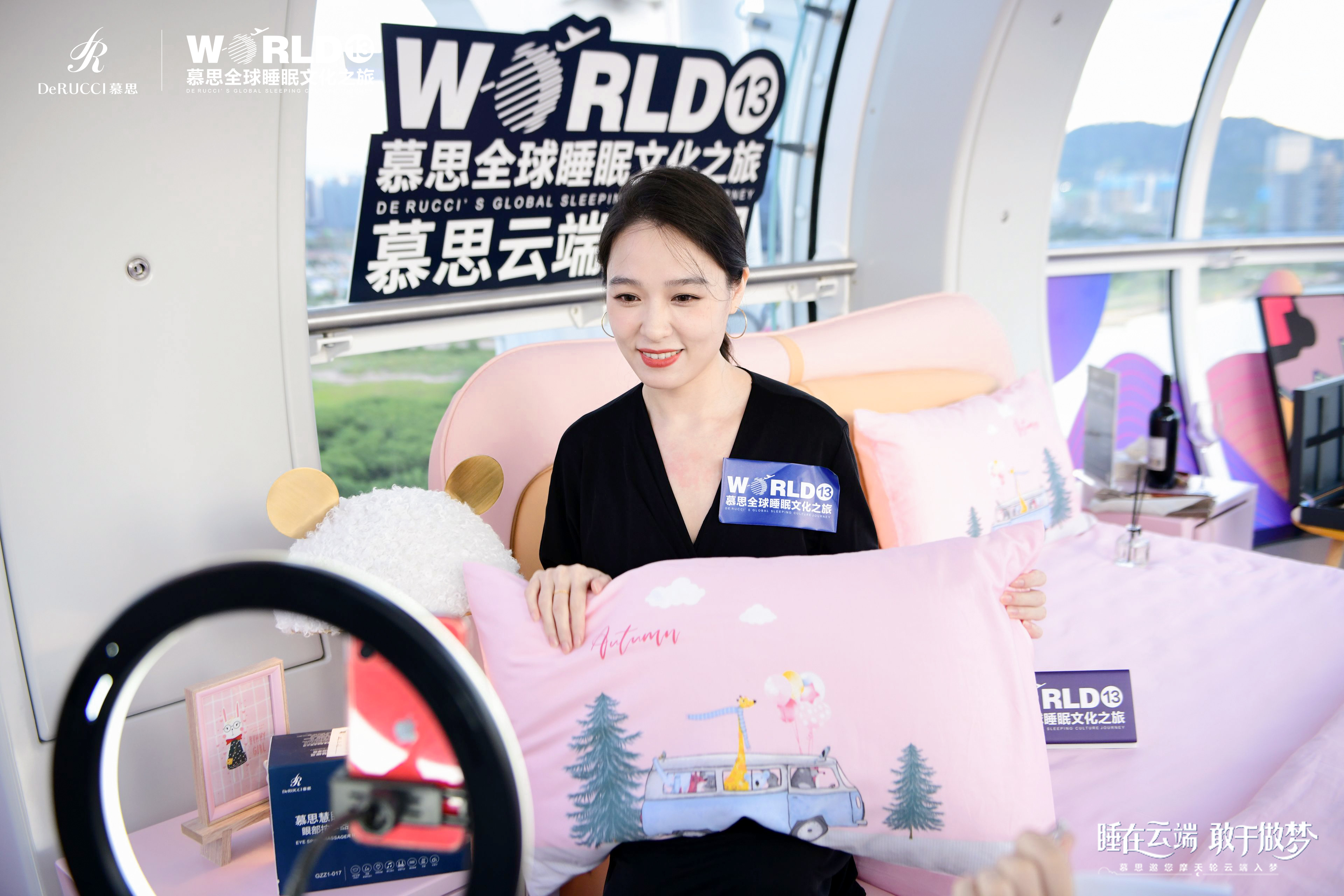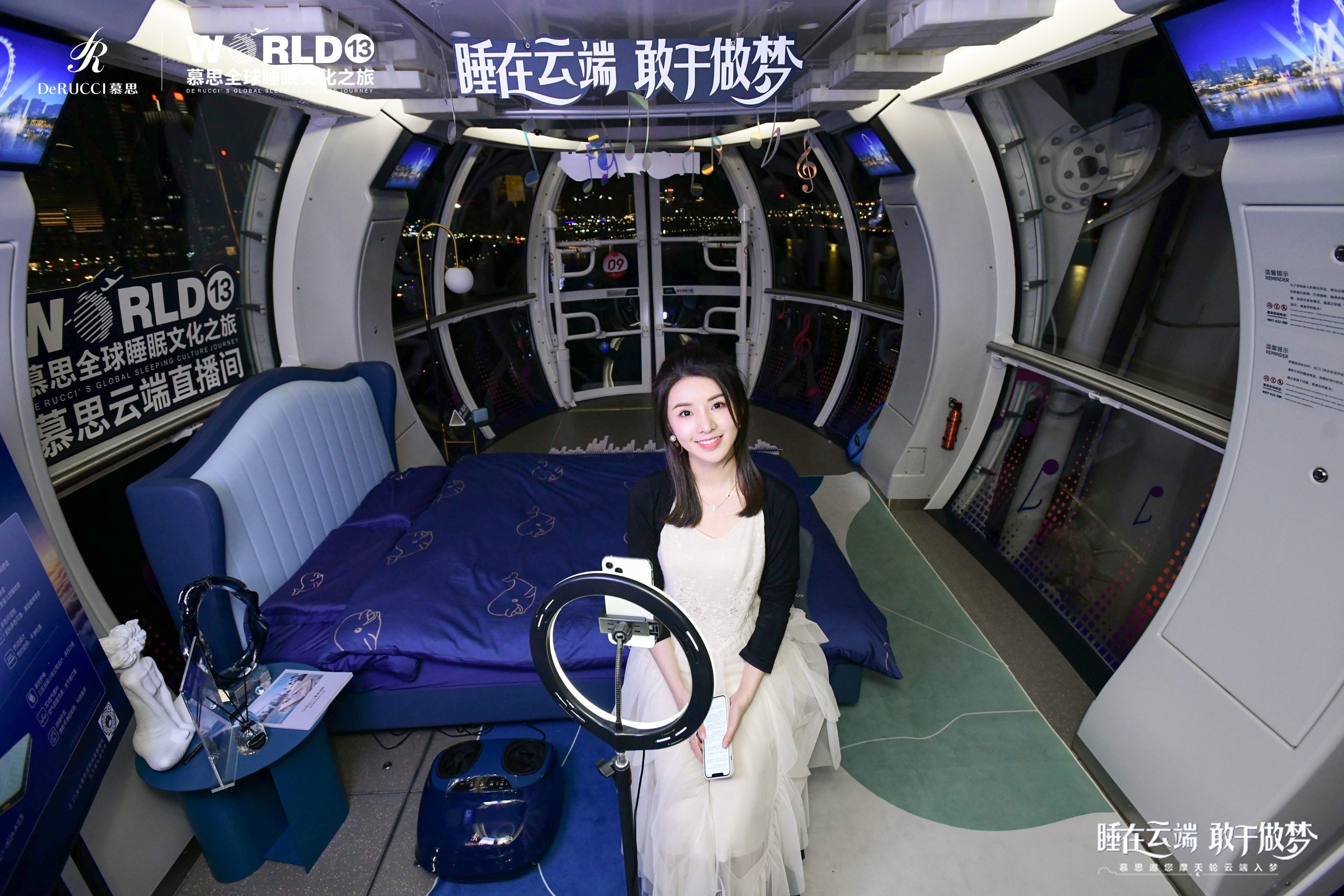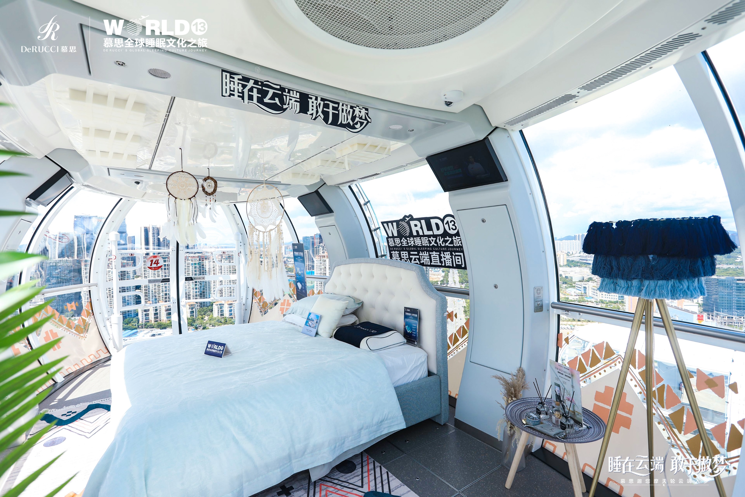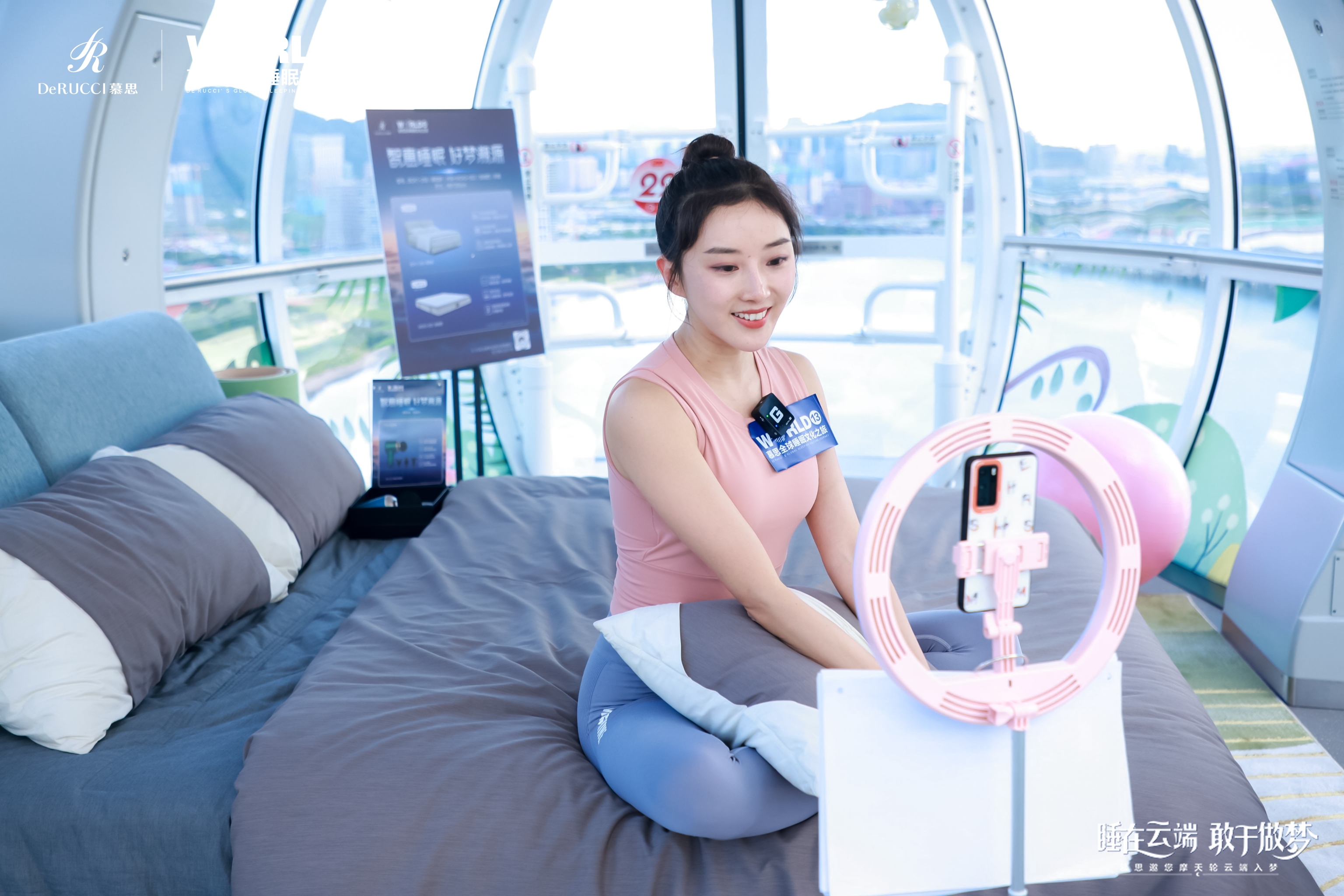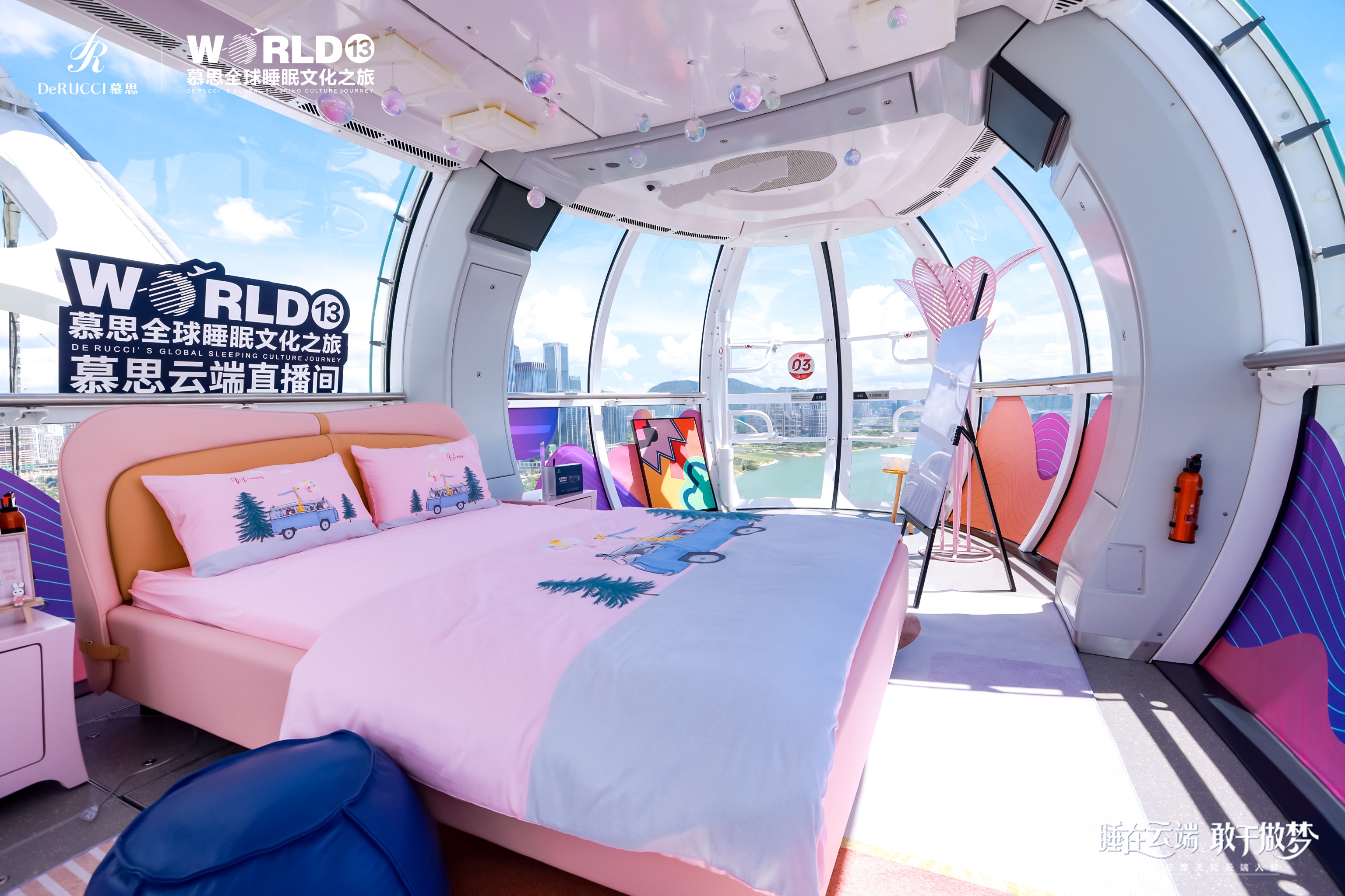 8月25日,慕思将深圳“湾区之光” 28座摩天轮轿厢打造成精致梦幻的云端卧室,邀请世界冠军张继科和资深体育解说员韩乔生,在现场高空云端躺播,成为瞩目一时的活动事件。这一次云端睡眠,打破了睡眠圈的惯性思维,打开了一个全新的视野——原来,睡眠不只是可以在室内玩,还能上天。