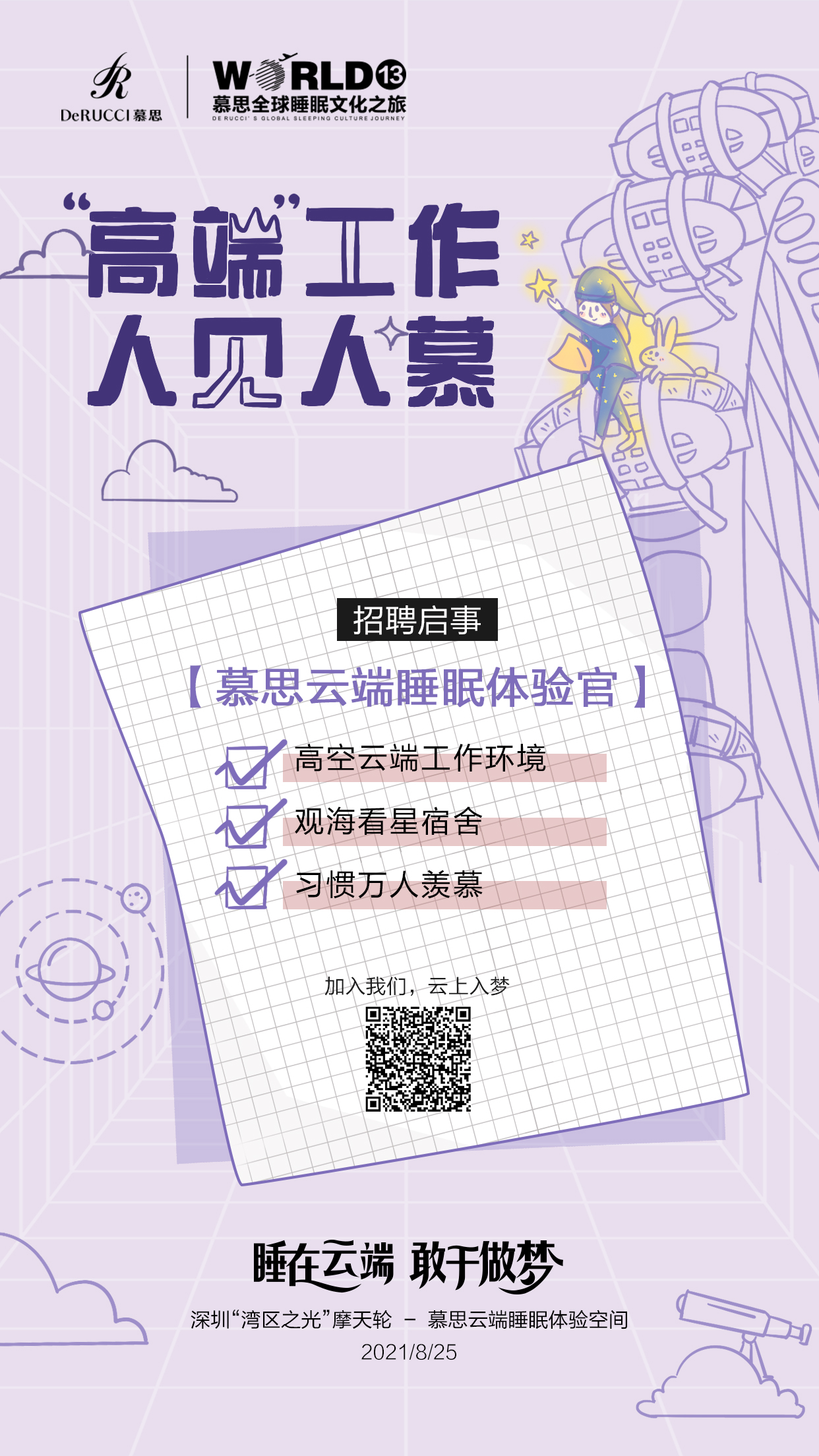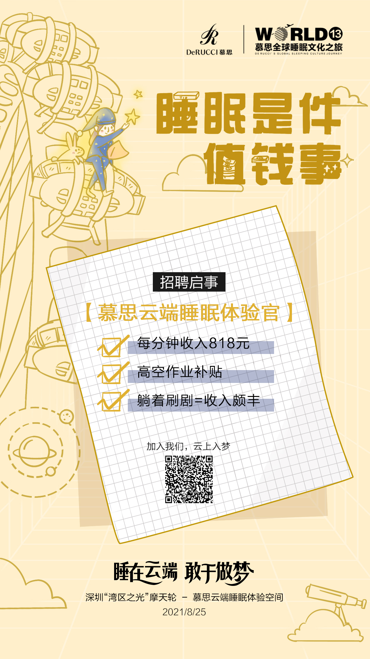 云端睡眠背后还有另一个含义。“睡在云端,敢于做梦”,慕思通过这样一个活动,鼓励用户勇敢追梦,敢于实现不可能,传递出美好信念,从而和都市焦虑一族形成精神共鸣。不管是云端睡眠,还是其推出的每分钟赚818元的睡眠体验工作,都释放出敢于做梦的正能量,鼓励用户释放压力与疲惫,使身心治愈,感受喜悦,这是睡眠文化的深层次意义。
