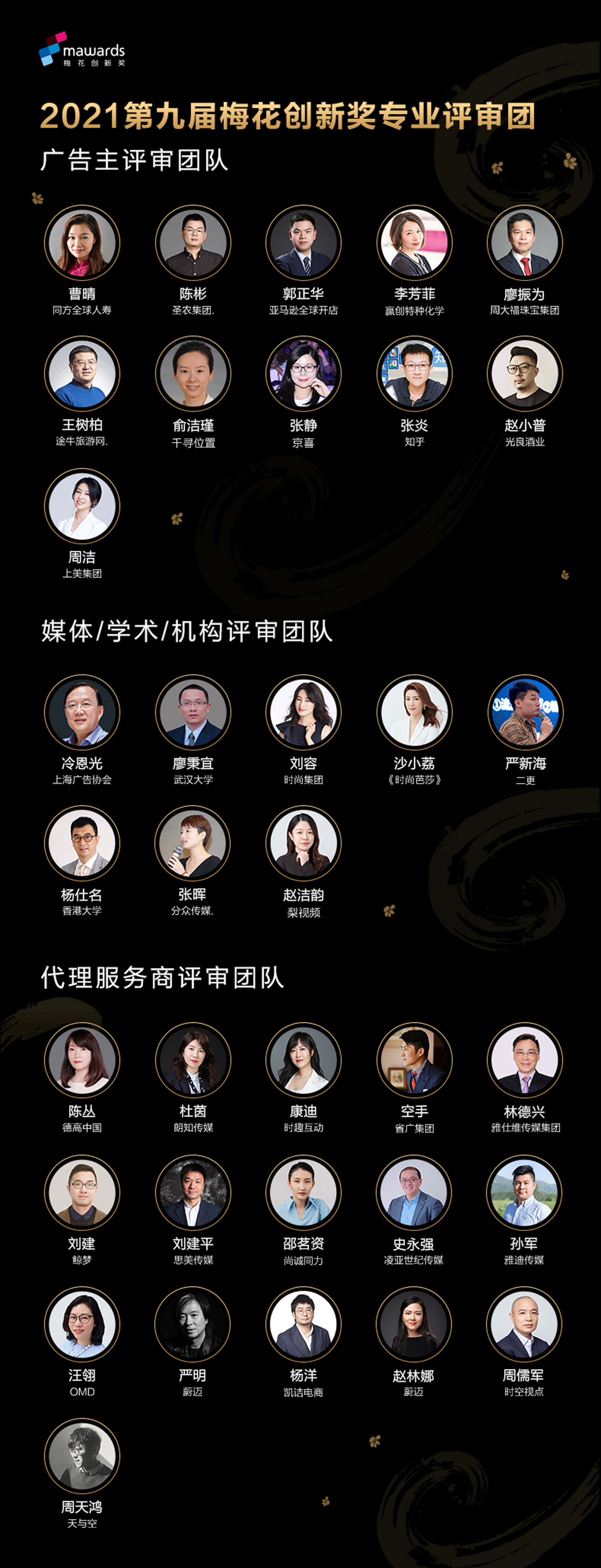 9月22日,第九届梅花创新奖(Mawards)专家评审团正式产生。今年评审团力邀广告主加盟,不仅邀请到了周大福、途牛、知乎、亚马逊全球开店、千寻位置等知名企业高管,还邀请到了省广、群邑、天与空、时趣、鲸梦等行业头部服务商的领军人物担任评委。