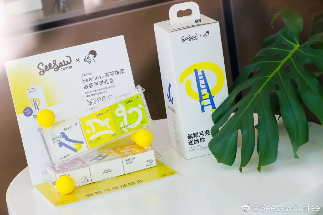 喜茶与Seesaw coffee联名推出月饼礼盒【See茶x喜Saw】。