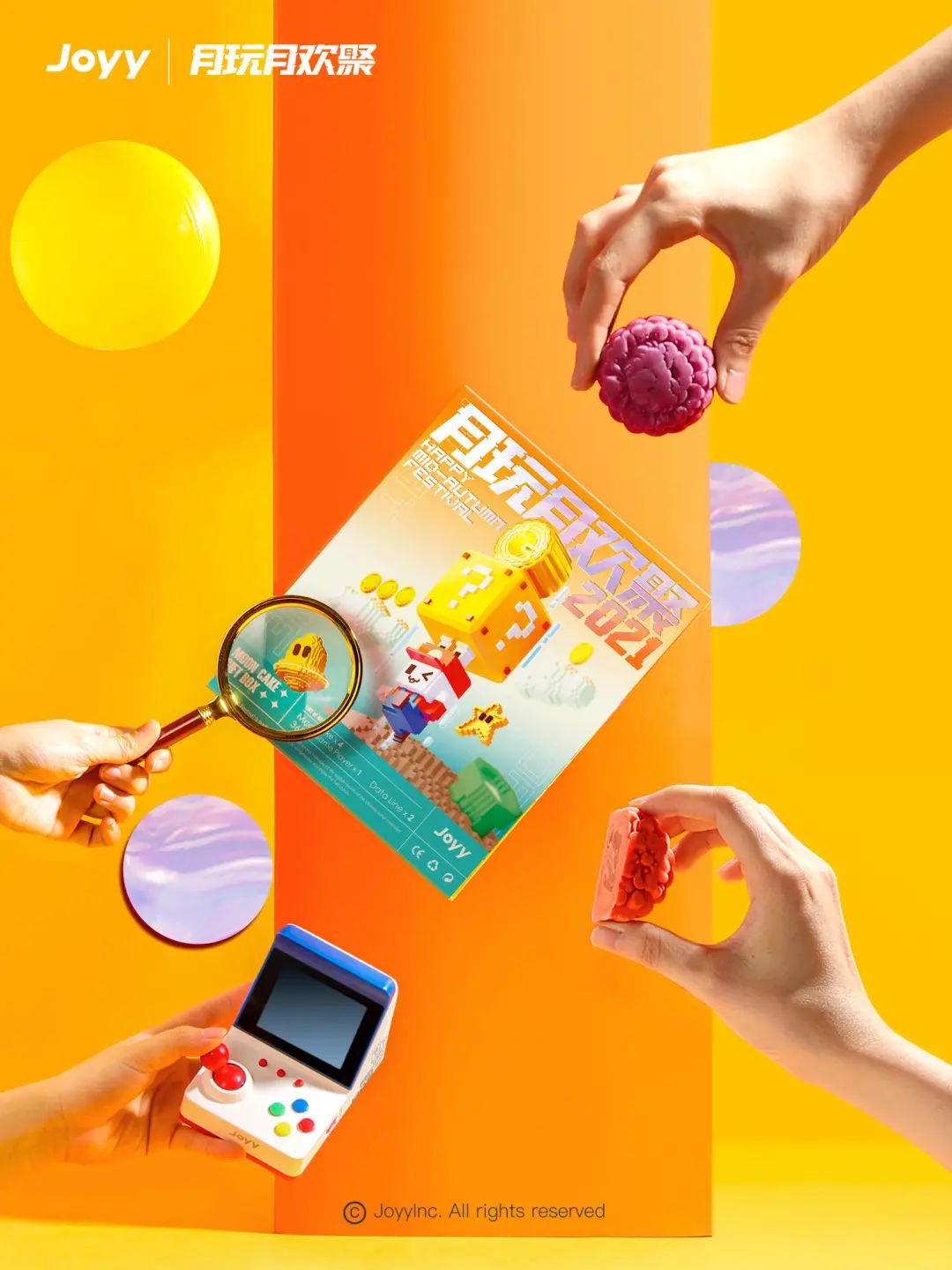 礼盒中含迷你复古街机一只,内盒则采用方块、金币、管道等像素风游戏元素组合成盲盒。