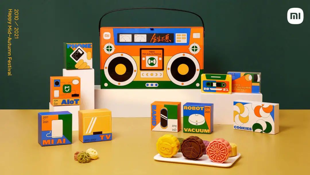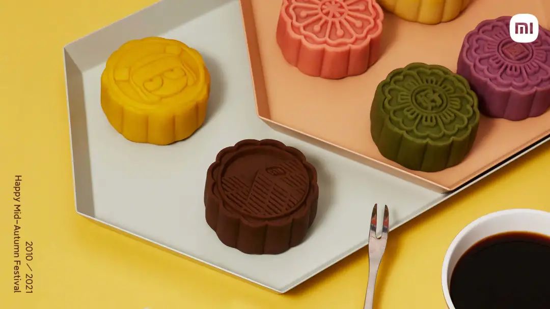 月饼表面的印花造型则来自小米科技园、米兔,和“米”、“好”、“月”、“圆”四字~