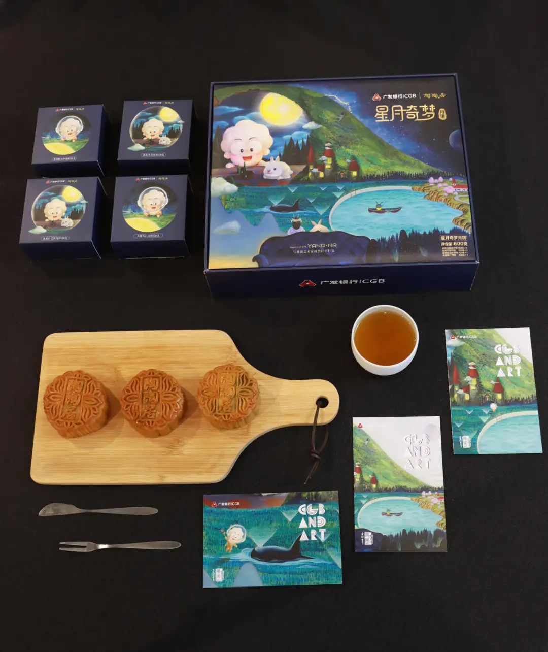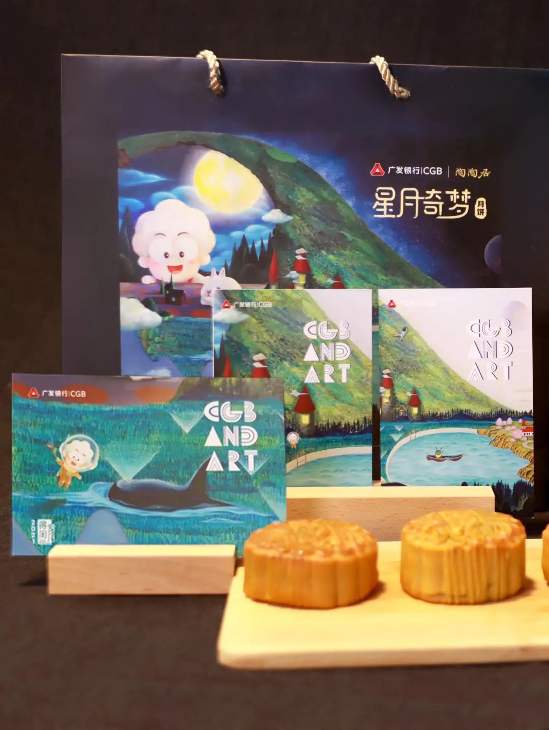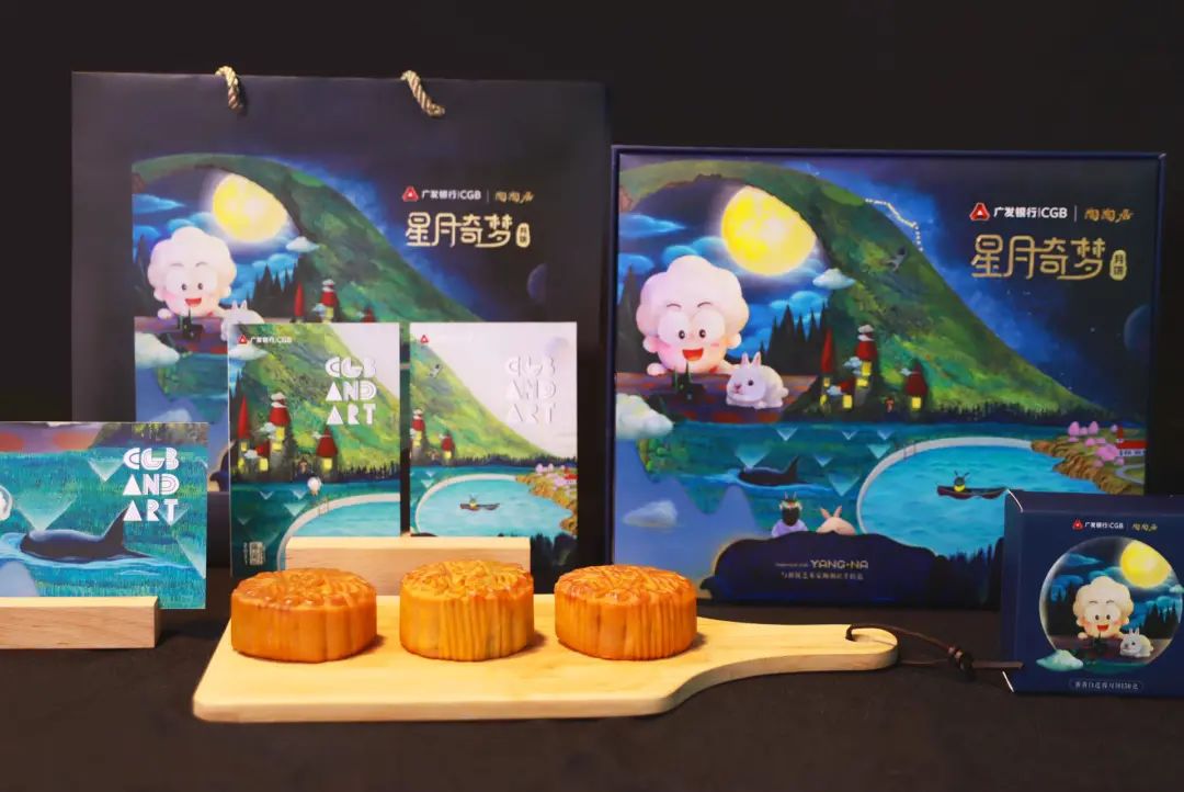 广发信用卡品牌IP“小发羊”与陶陶居携手超现实主义艺术家杨纳,设计出【星月奇梦】主题中秋礼盒。