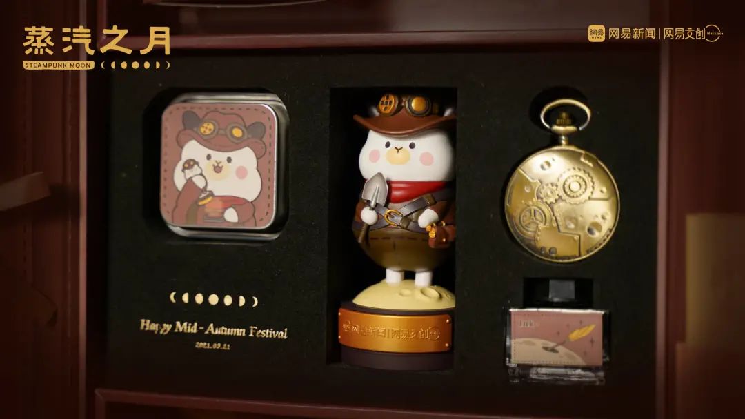 礼盒【蒸汽之月】由网易文创虚拟IP小羊驼三三出镜。