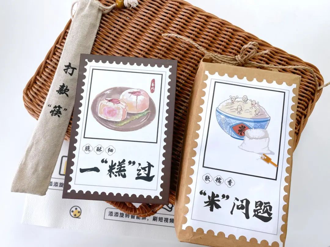 礼盒内含“米问题”、“一糕过”、“打款筷”等定制谐音梗选品,让大家好好吃饭的同时,也送出了最诚挚的祝福!