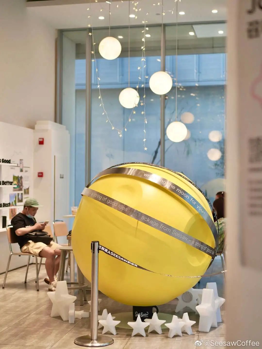 杭州Seesaw天目里门店里有一个月球装置,明黄色柔和又浪漫,供大家打卡拍照。