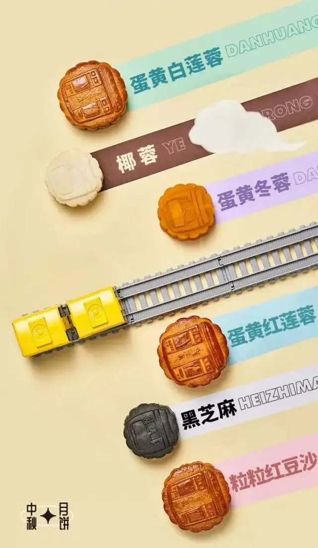 礼盒以一号线列车为主题设计,采用食品级原料;月饼共六种口味,兼顾创意与传统。