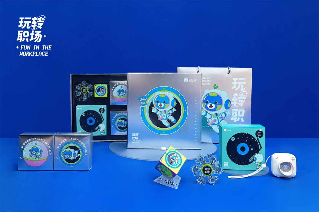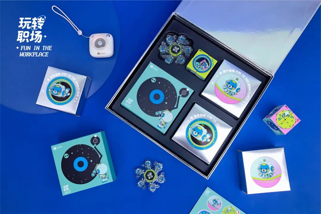 陀螺、魔方、音响、月饼,组成了【玩“转”职场】中秋礼盒。