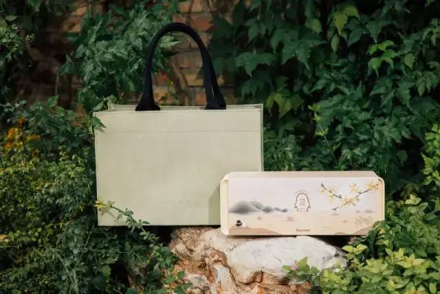 礼盒内含六种口味月饼及桂花乌龙茶,甜蜜清爽两相宜;帆布包低调简约。