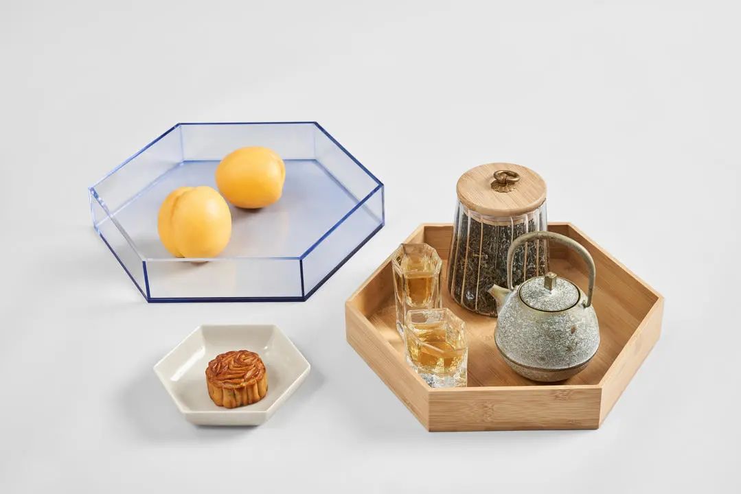 包装内含亚克力盖、楠竹底盒,可作果盆、收纳茶具,反复使用。