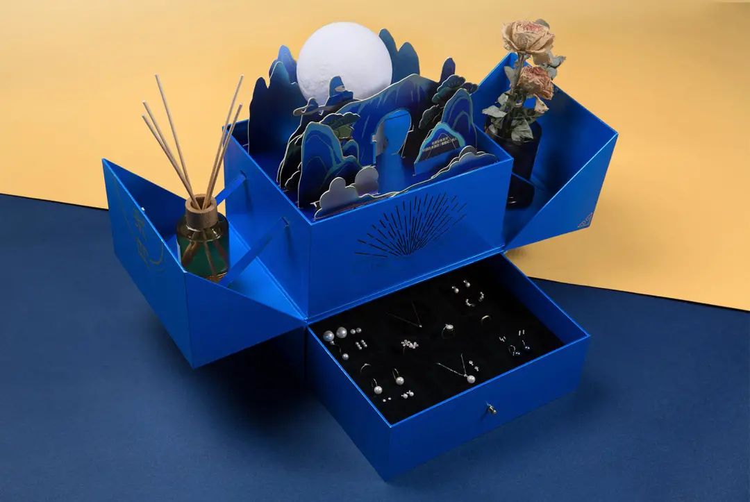 盒盖可以用来置物,礼盒下方抽屉可以变身首饰盒。