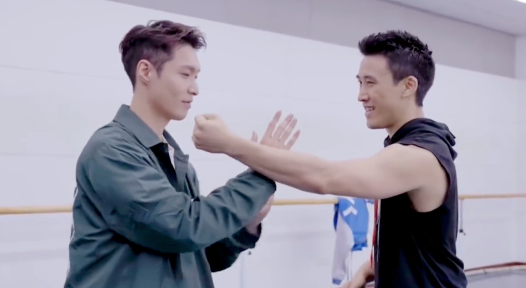 反观顶流这边,擅长舞蹈的张艺兴在综艺节目中被安排学习咏春拳,面对师傅的展示和教学,他有点懵,一脸的不可思议。颜粉们说他是“呆欲天花板”。