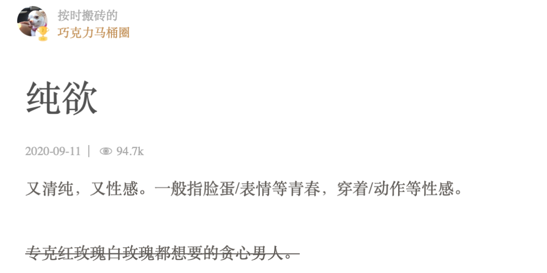 并且,“纯欲”一般只指女生兼具清纯和性感两种反差气质。
