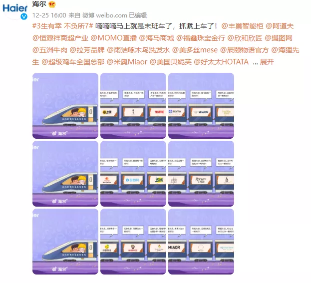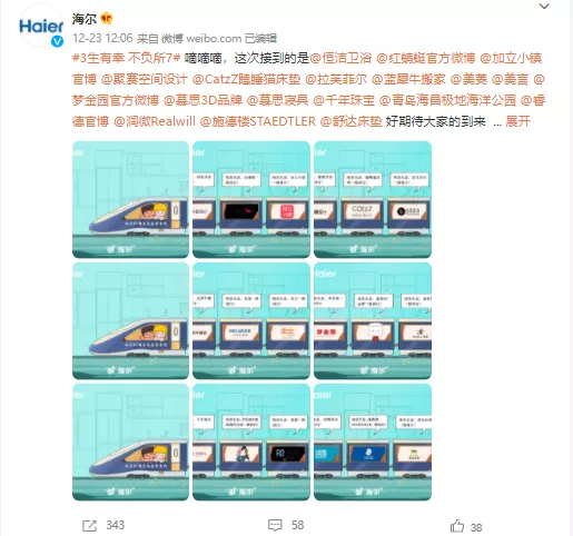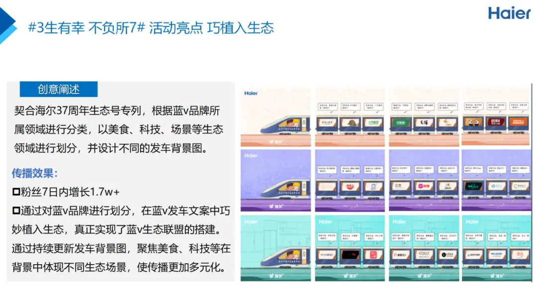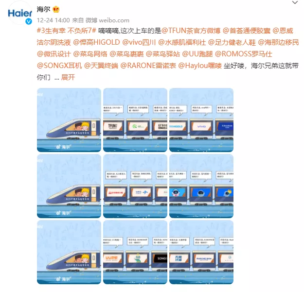 @海尔 的做法是化繁为简,把蓝V圈里流行的合作“发车”演变成一场真正的“携手发车”:把蓝V联动做到极致。