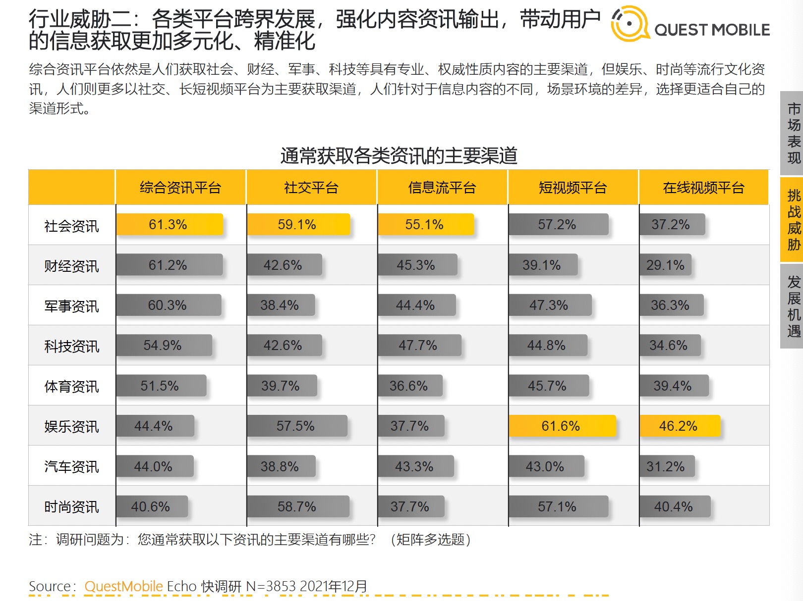 因此,资讯服务平台领域的竞争早已不再是单一能力的竞争,而是多维度、多领域的全面竞争,用户的需求也早已从单一内容形式升级为多形式。