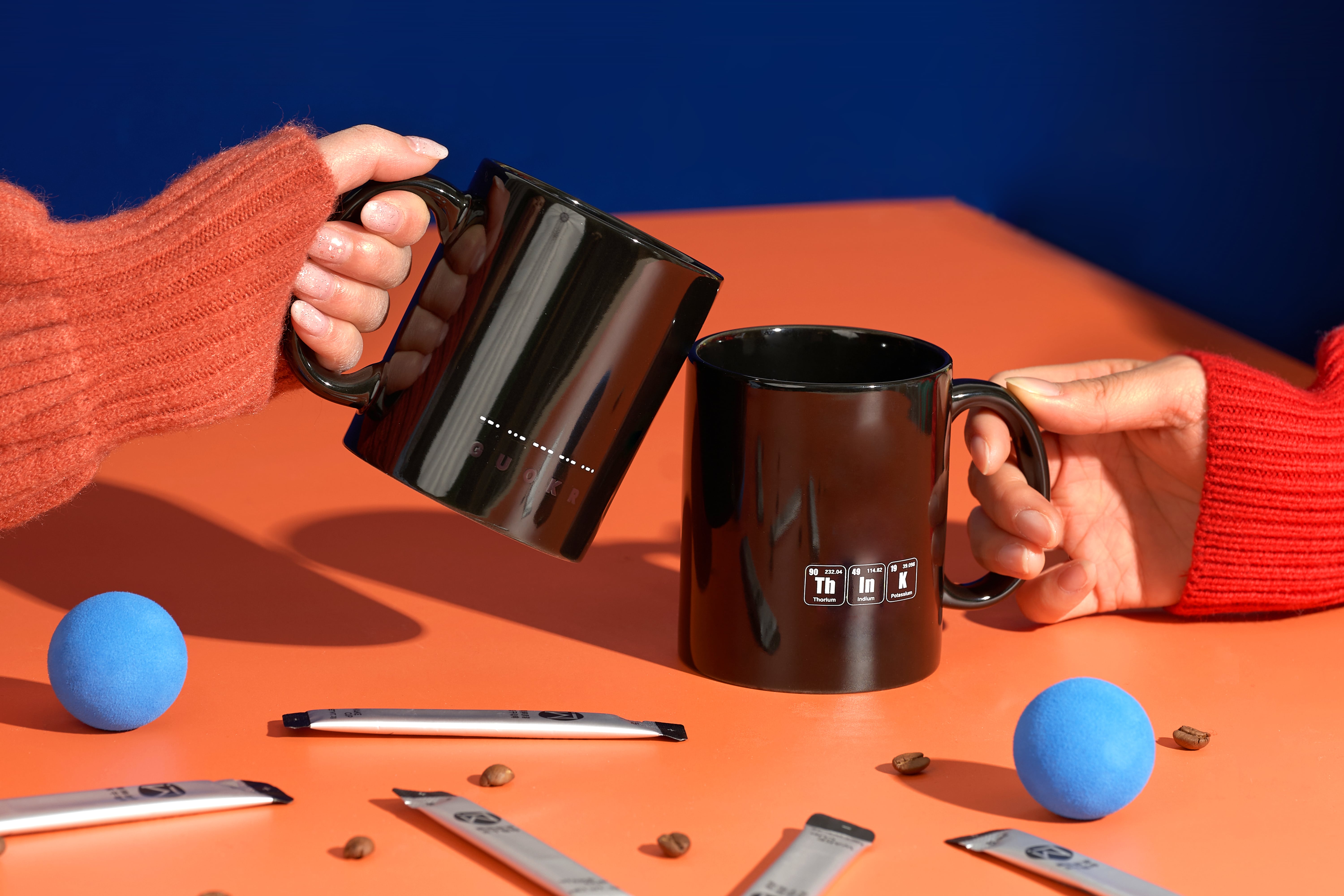 感温变色马克杯的设计,钍、铟、钾,就是Th+In+K=Think,热咖啡冲进去,灵感猫闪现!