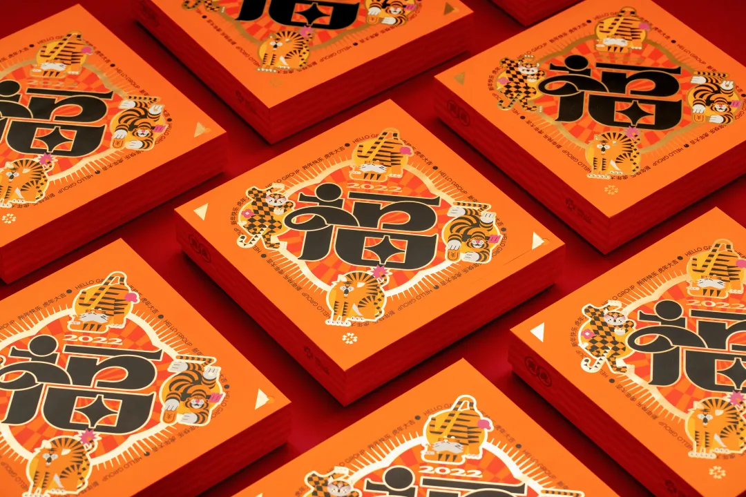 整体礼盒配色采用红金配色,寓意红红火火、财源广进,希望新的一年所有合作伙伴有福气、有祥瑞。