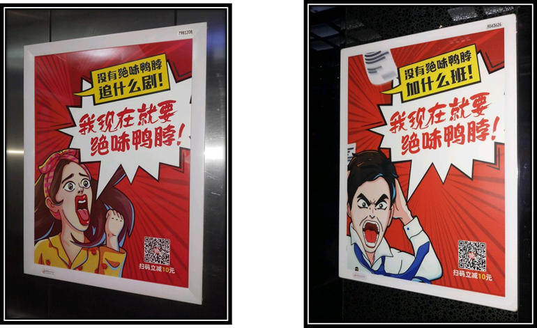 例如当人们都吃过绝味鸭脖时,再反复用麻辣鲜香这个广告语去勾引用户效果有限,所以他们在办公楼的电梯海报上说:没有绝味鸭脖,加什么班。在社区电梯海报上说:没有绝味鸭脖,追什么剧。在没有刚需的场景,触发了潜在的需求。