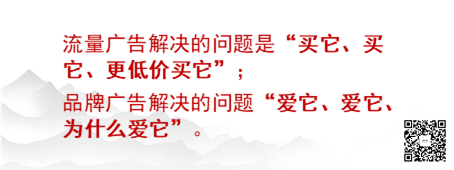 流量广告解决的问题是“买它、买它、更低价买它”;品牌广告解决的问题“爱它、爱它、为什么爱它”。