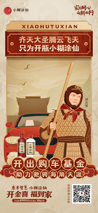 在春节这一白酒销售与开盖旺季,小糊涂仙紧抓市场,以真金白银放送49999元购车基金、50g金条、2g黄金等好礼,让原本喜乐的春节氛围更添满满福气。