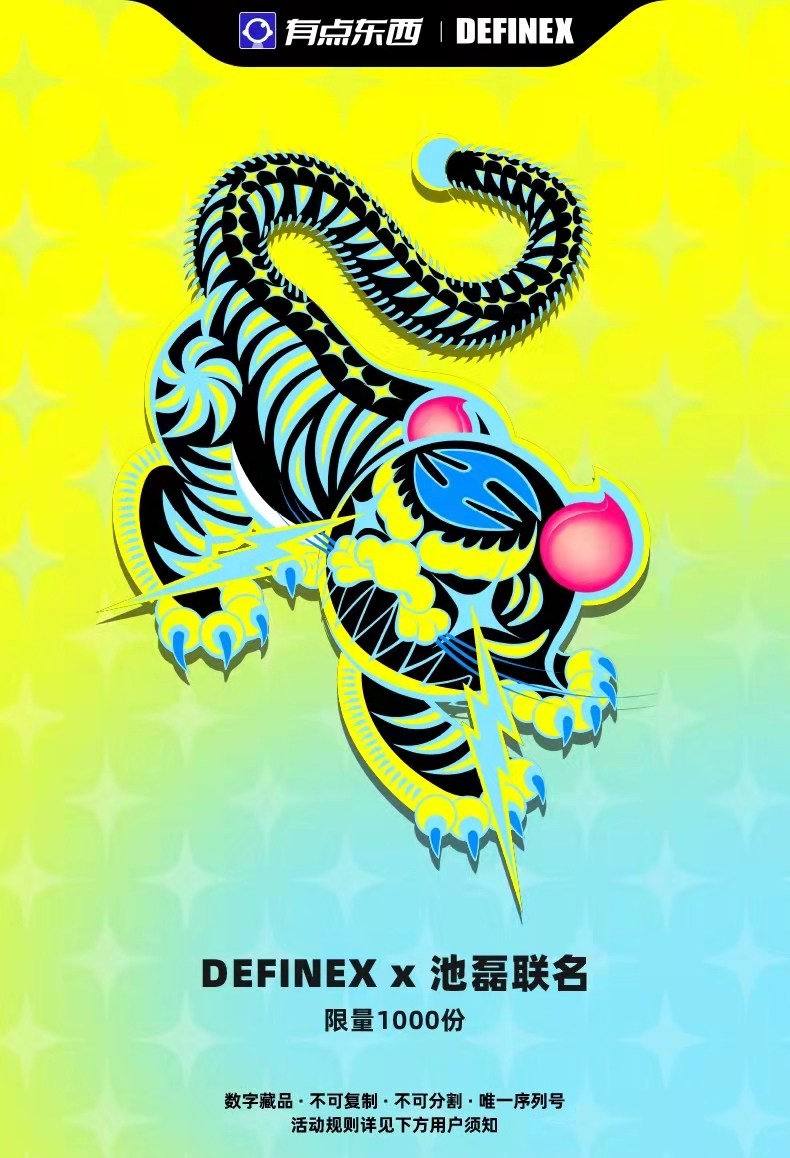 同时,借着新年寅虎主题,高街潮牌DEFINEX也携手国内颇具争议和影响力的新锐艺术家池磊先生,联名创作上线《虎啸雷霆》系列潮流数字年画,用pop art国际语言讲中国传统故事,精准把握住时下年轻人的小粉红主动脉。