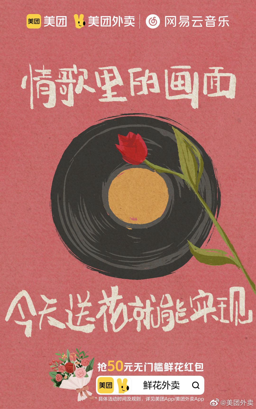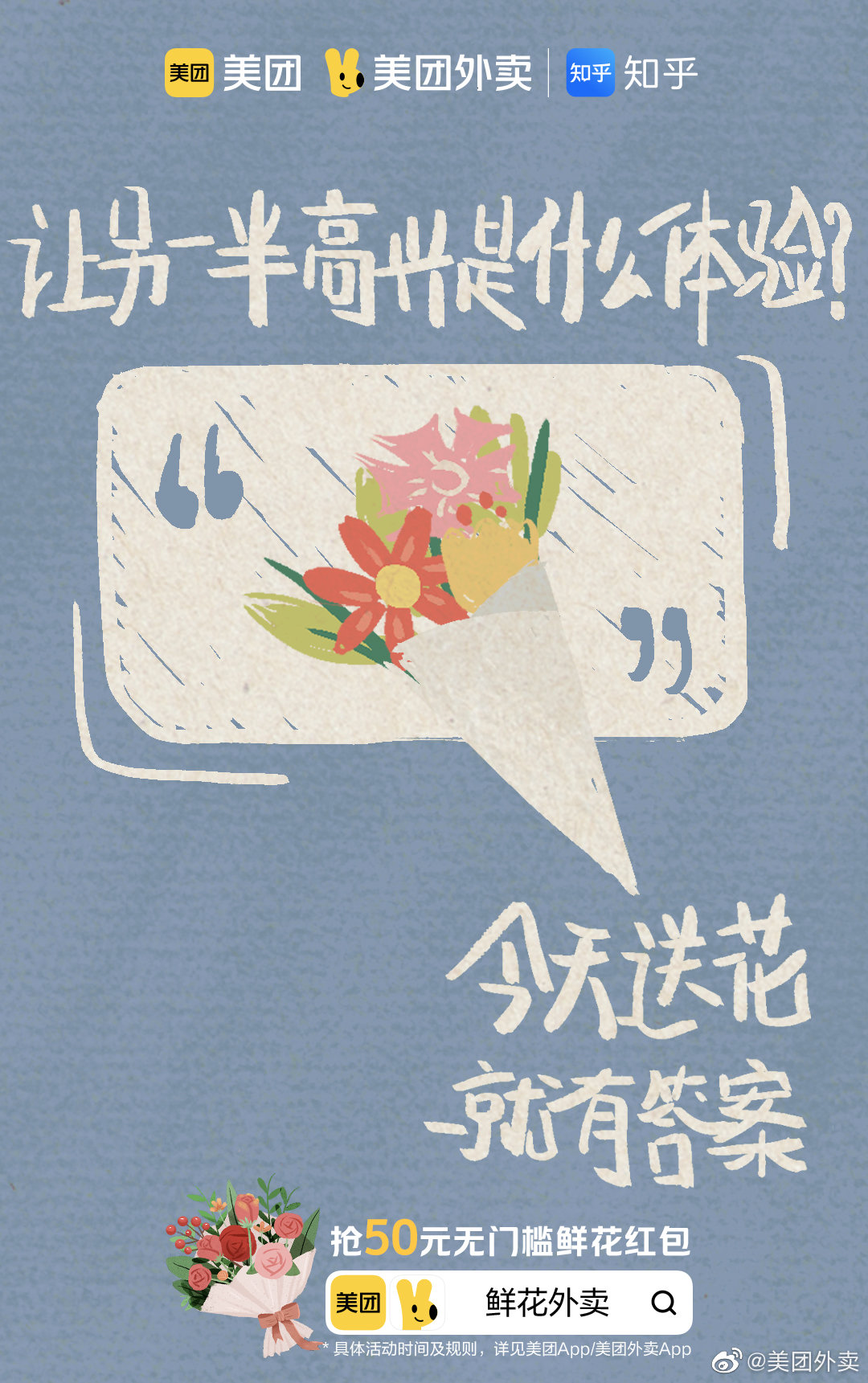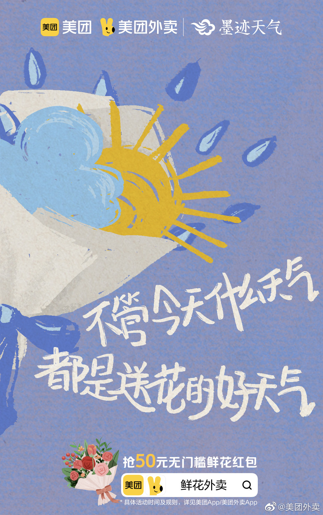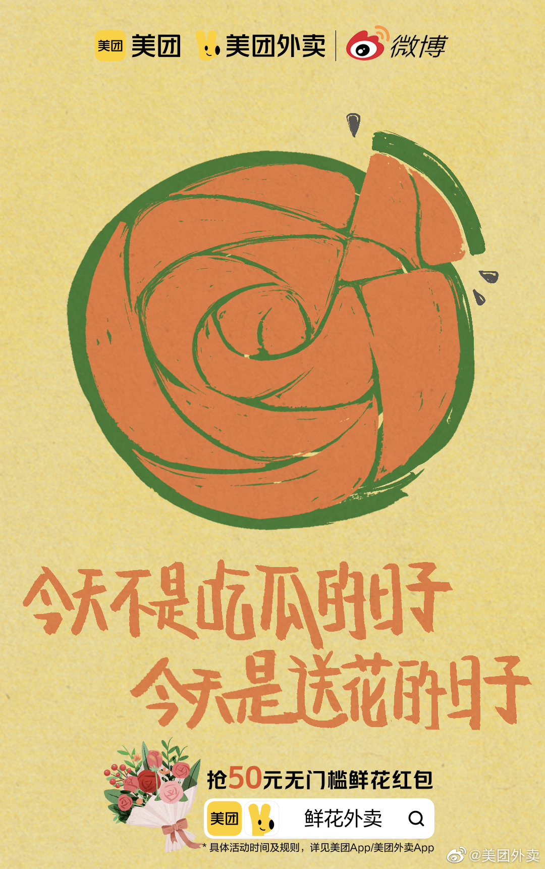 2.14情人节,美团外卖联动一众品牌推出一组#鲜花外卖#的系列海报。