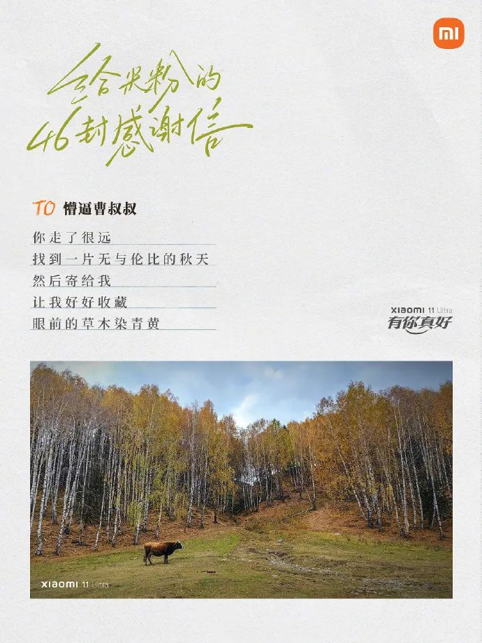 4月6日是小米的米粉节,为回馈广大米粉的支持,小米带来一场浪漫的回应,用46封感谢信,感恩粉丝与小米一起走过的漫长岁月。
