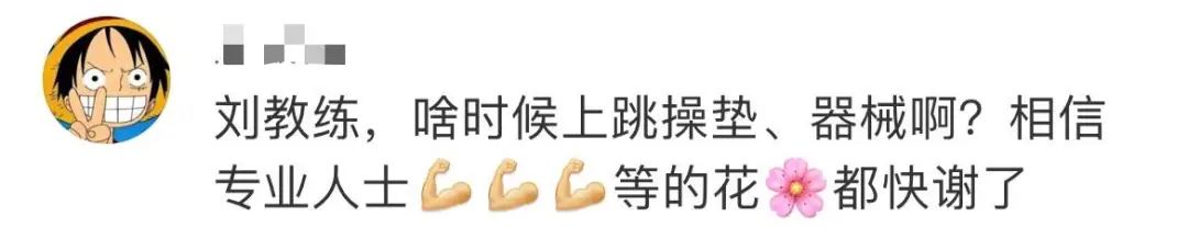 除了喝的,还有网友催促刘教练赶紧把健身器材推荐起来。