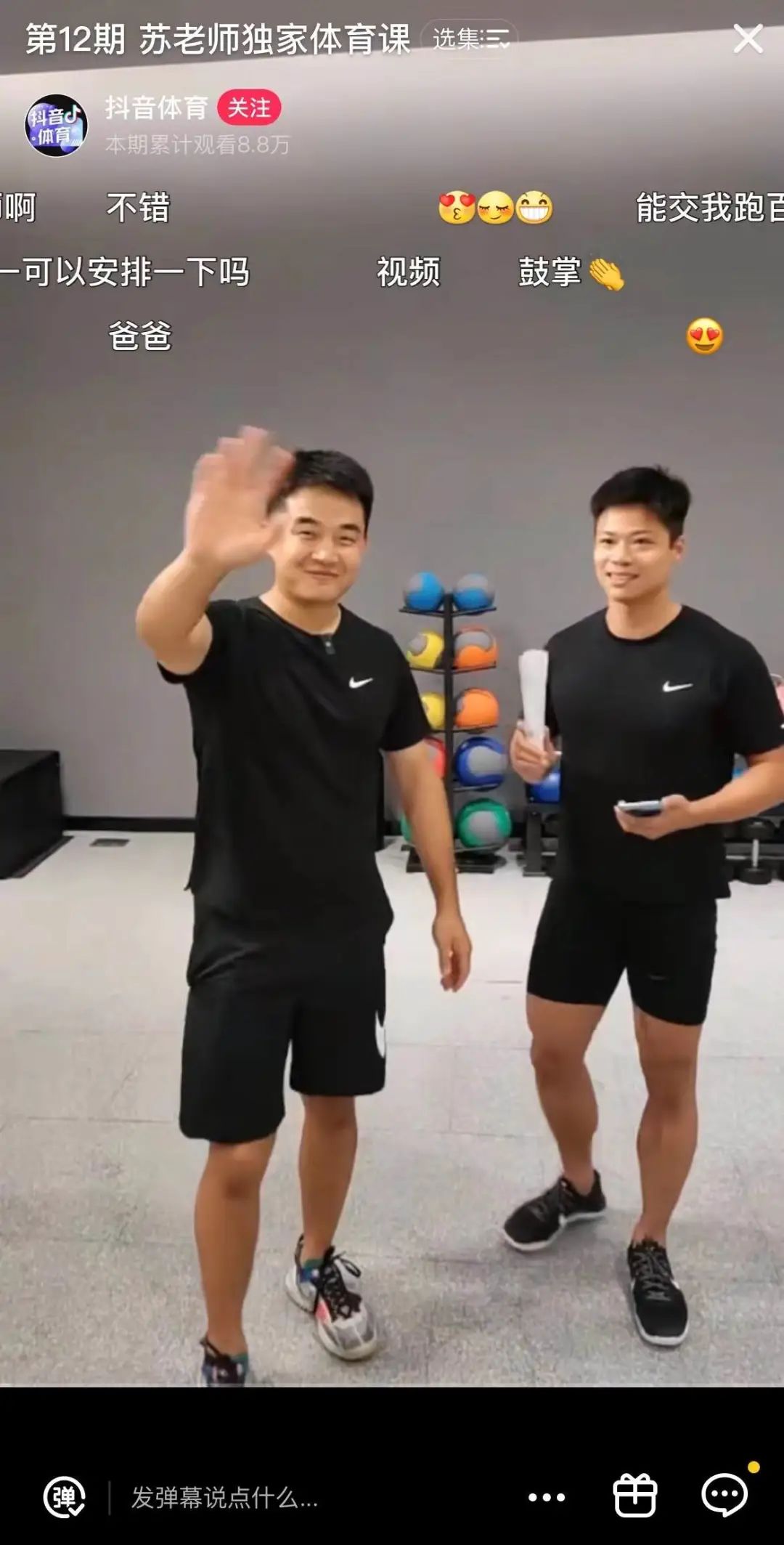 与此同时,抖音体育也与国家运动员们合作开发了《冠军健身课》。在某一期课程中,“苏神”苏炳添携手短跑领域的治疗师、营养师、助教等出镜,为网友讲解训练方式和动作技巧。
