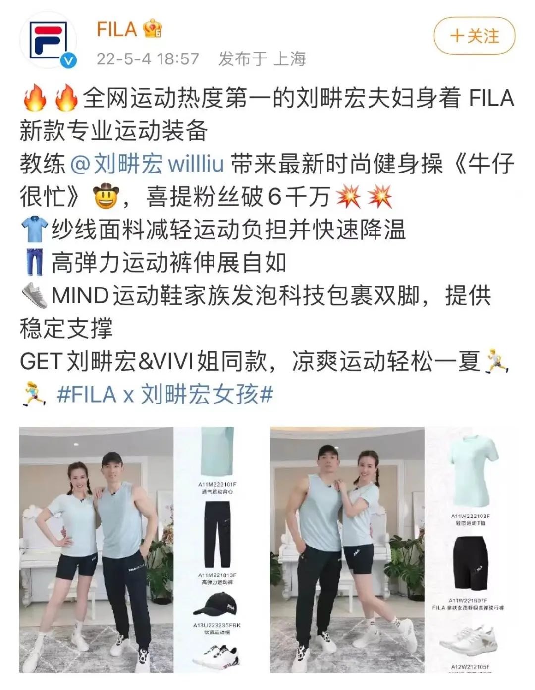 就在5月10日的直播中,刘畊宏和vivi已经换回私服跳操,没有继续穿FILA。 与FILA的合作难道就这样结束了吗?