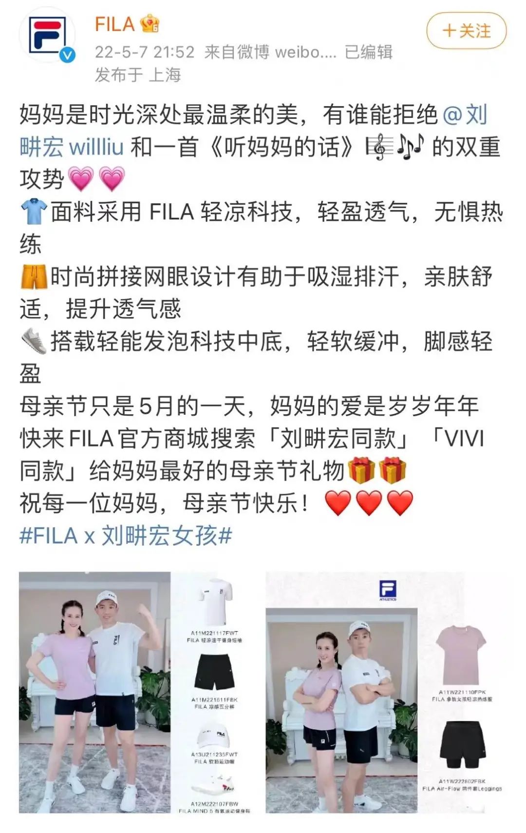 首先,FILA是安踏集团旗下的高端运动品牌。早在2017年,刘畊宏带着小泡芙拍摄综艺《爸爸去哪儿》的时候,双方就有过合作。