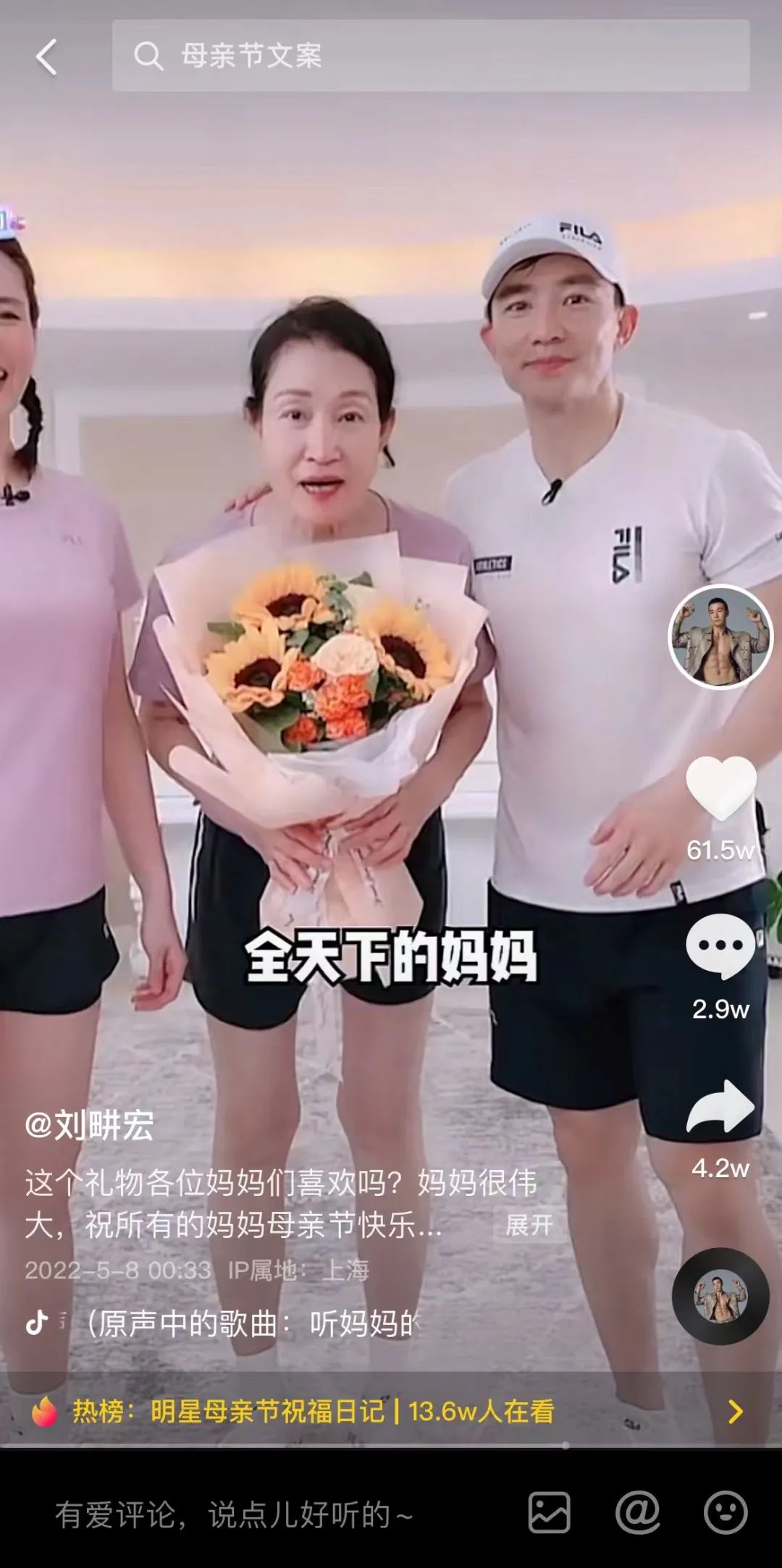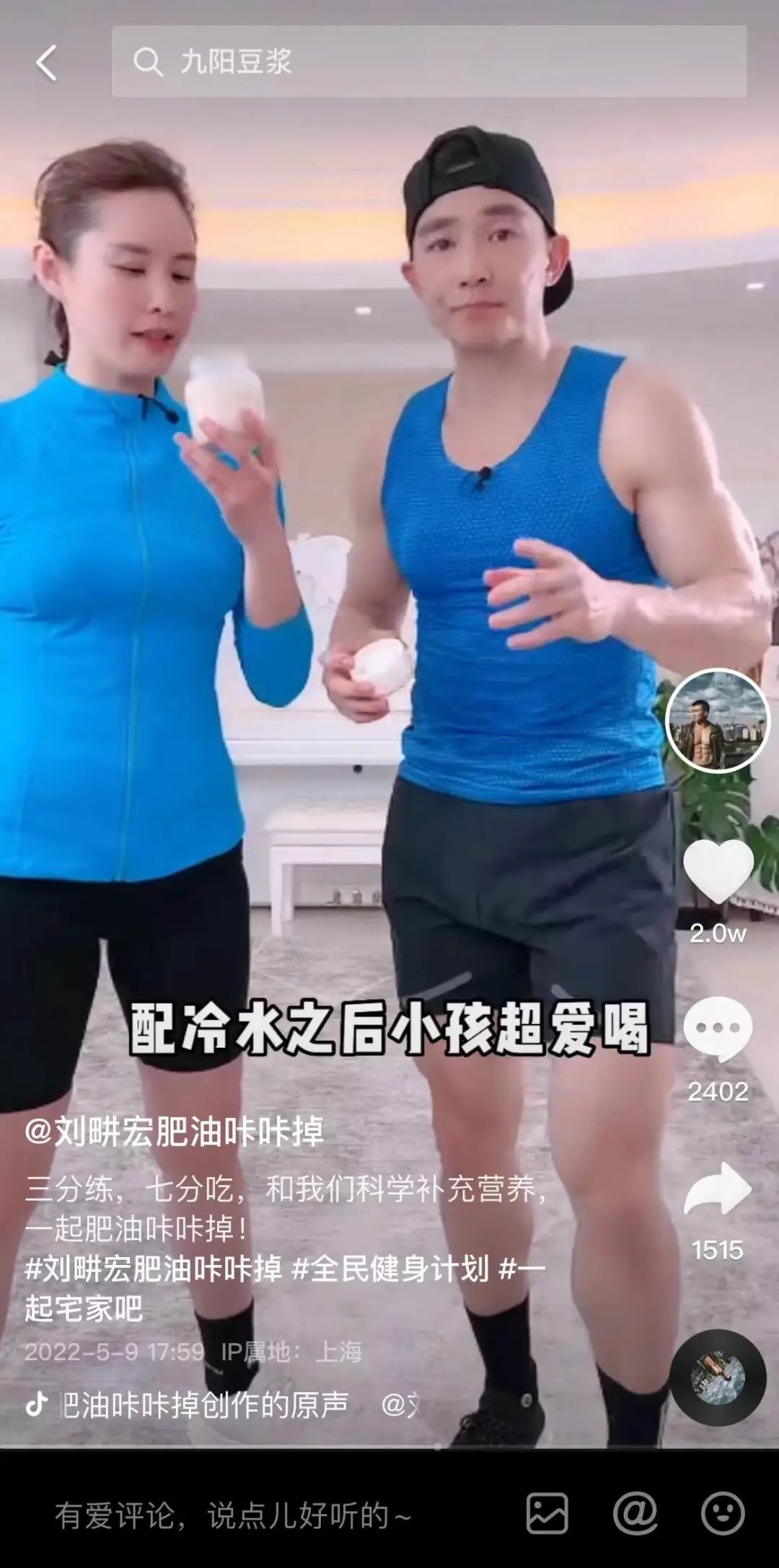 另一份合作是品牌代言。5月8日母亲节当天,@九阳豆浆 官宣刘畊宏为品牌代言人。