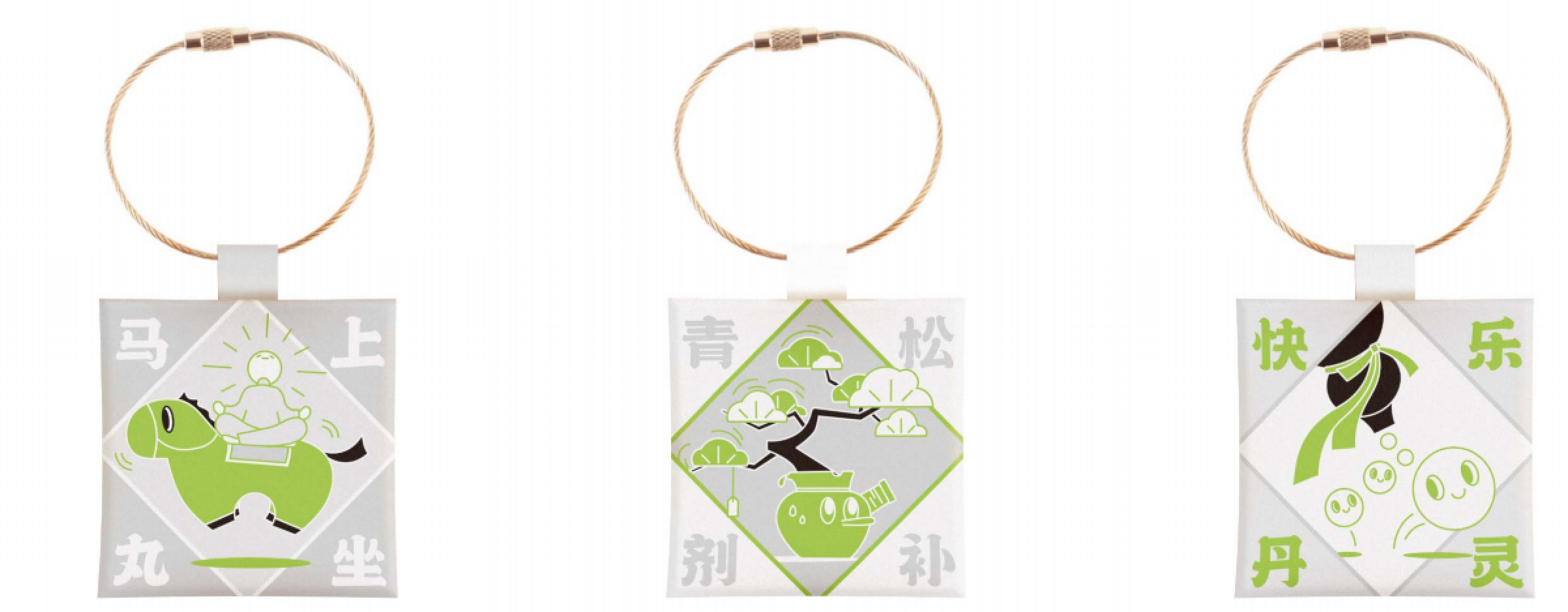 还有一款盲盒“妙语香囊”哦~可爱的谐音梗,意在帮助大家摆脱焦虑、拖延。