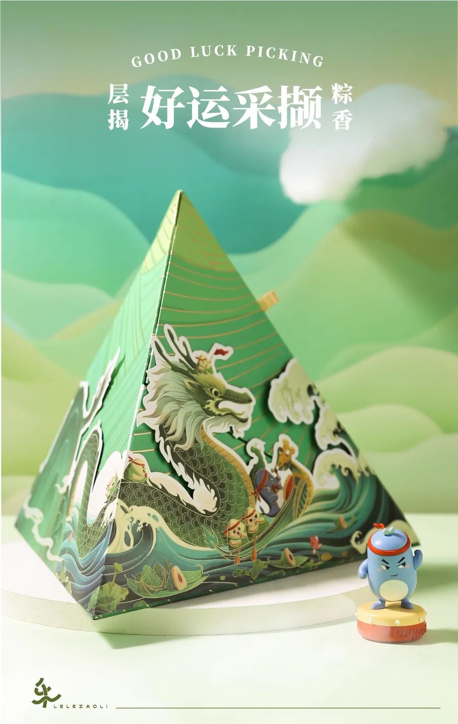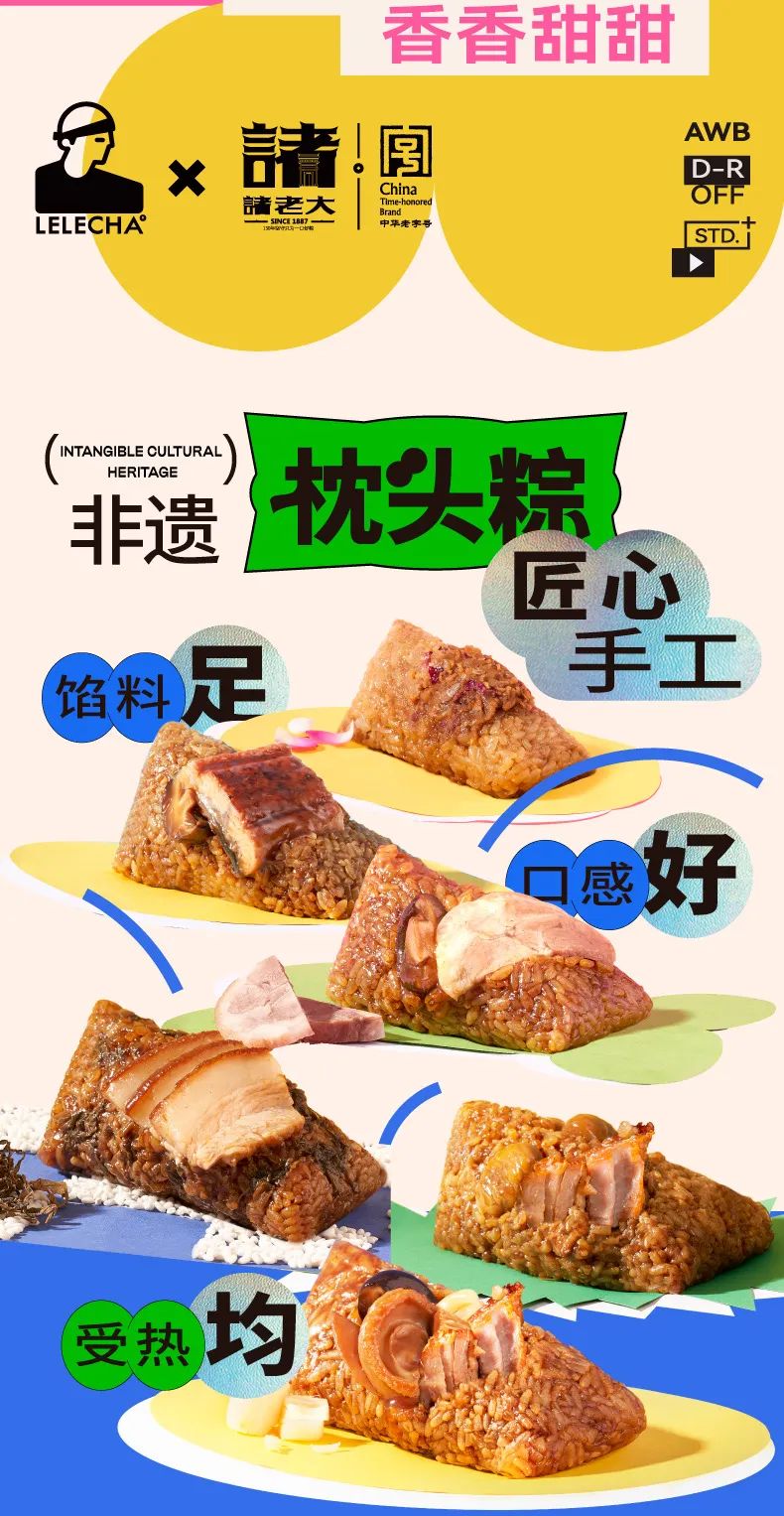 万物皆可乐乐茶,今年品牌携手诸老大推出手工枕头粽礼盒。