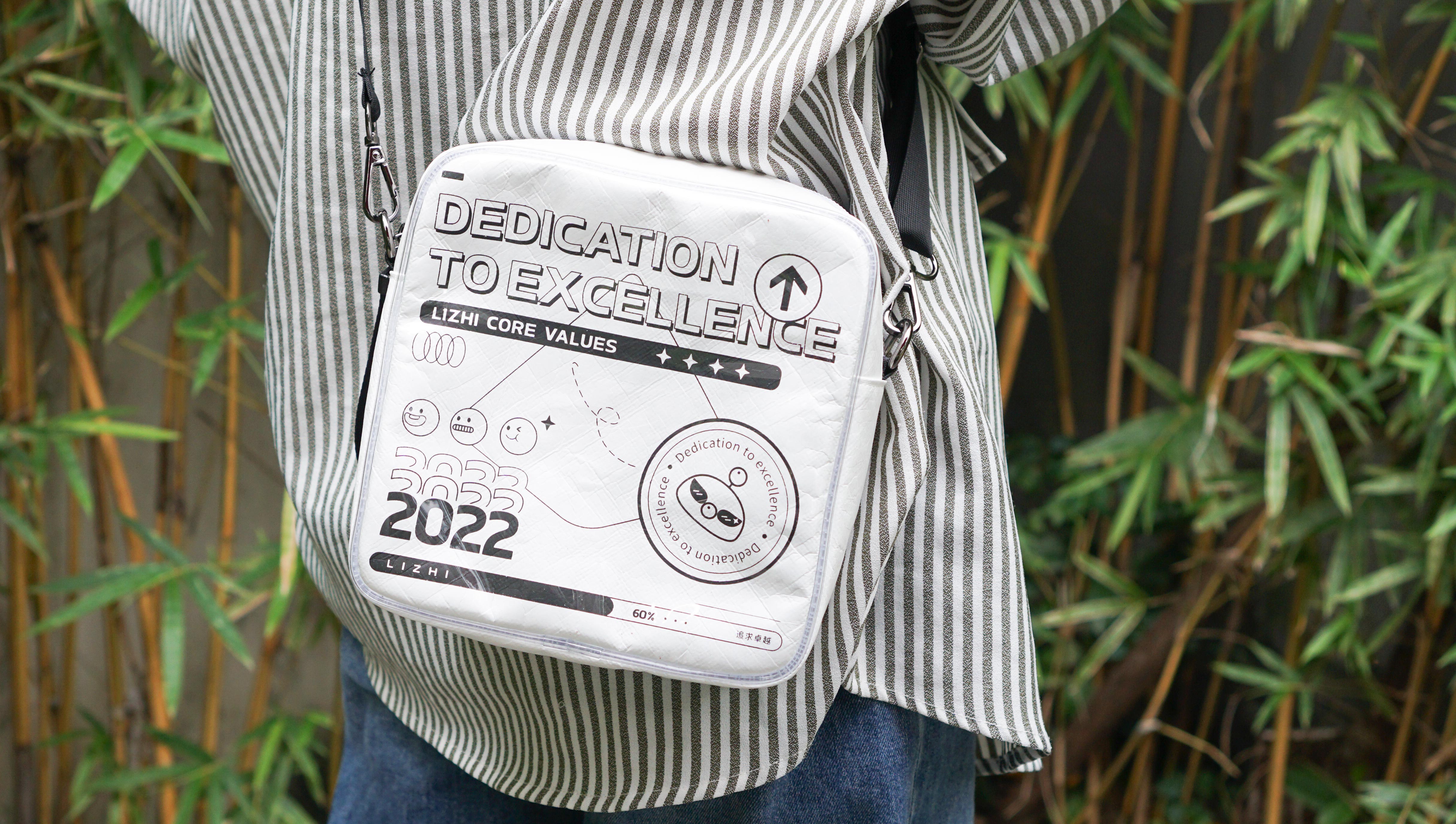 随机方包盲盒LIZHI VALUE小方包,美观实用,端午出游必备~仔细看,包包上写的是荔枝集团的五大价值观。