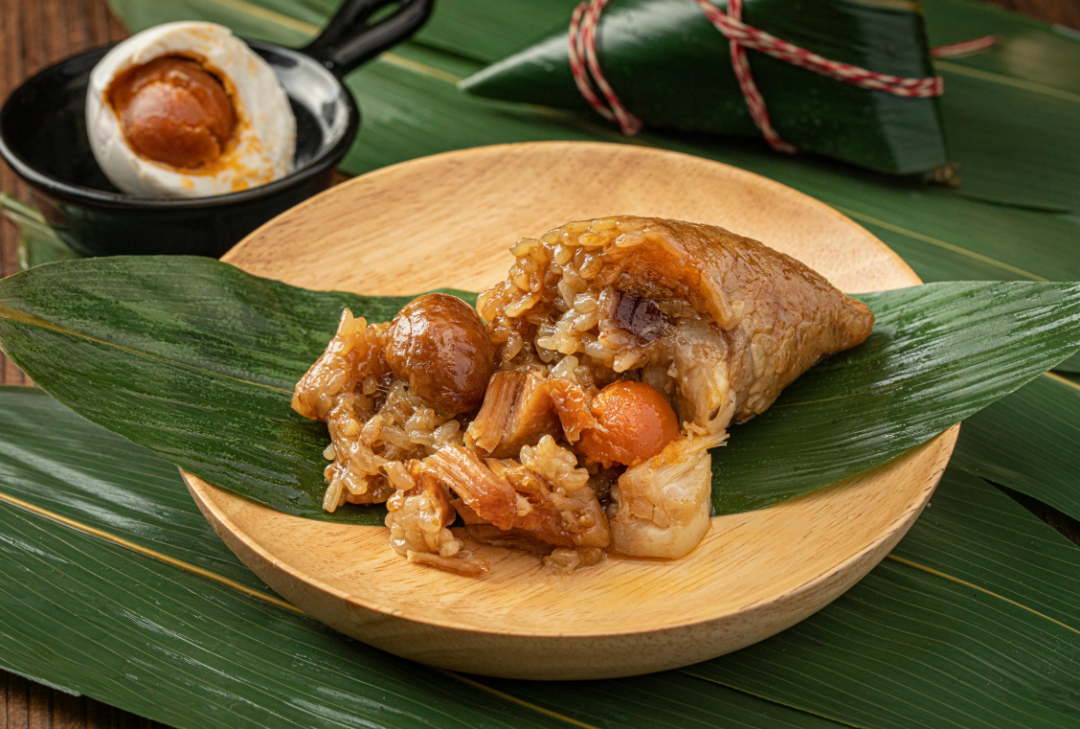 礼盒内含三款传统口味的粽子和流油咸鸭蛋。